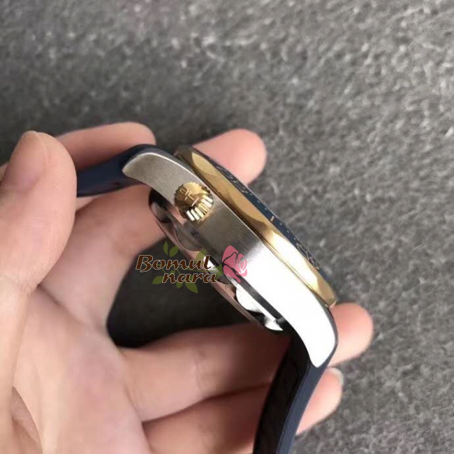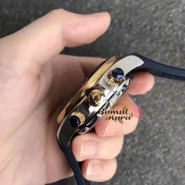 제품소재 : 옐로우 골드 IPG 특수이온 도금 / 세라믹 베젤 / 스테인레스 스틸 케이스 / 러버 스트랩