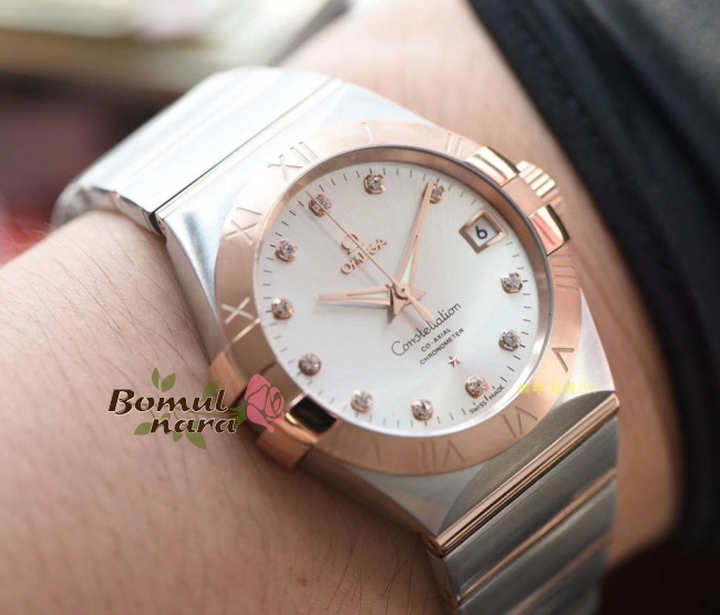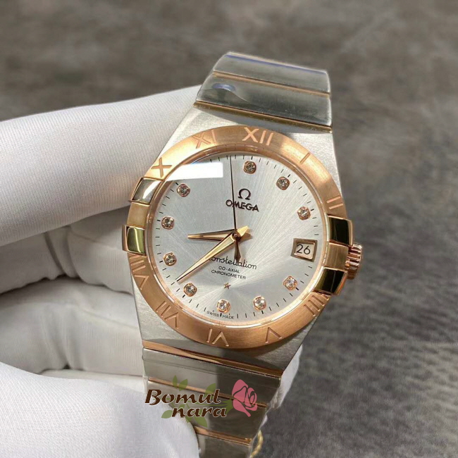 [스페셜오더]OMEGA-오메가 컨스텔레이션 레드 골드 다이아 인덱스 베젤 실버 워치 38mm 가격 : 780,000원