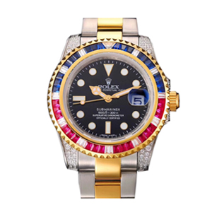 [스페셜오더]ROLEX-1888 롤렉스 오이스터 퍼페츄얼 서브 마리너 블루 핑크 옐로우 골드 사파이어 베젤 블랙 다이얼 스틸 워치 40mm