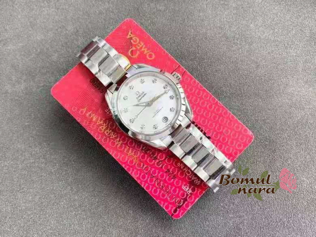 [스페셜오더]OMEGA-오메가 씨마스터 아쿠아 테라 150M 다이아몬드 스틸 화이트 34mm