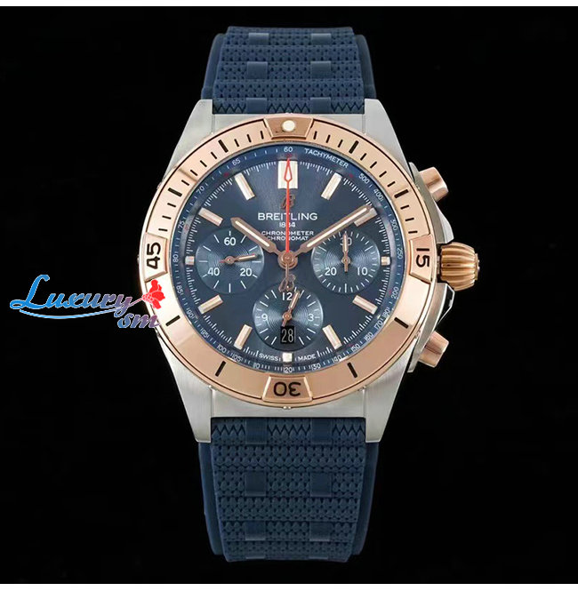 [스페셜오더]BREITLING-브라이틀링 크로노맷 B01 크로노그래프 러버 블루 다이얼 유틸리티시계 42mm
