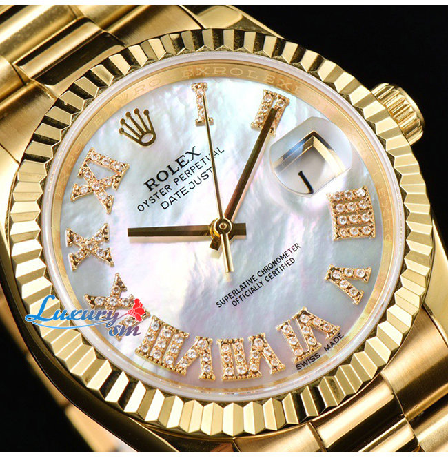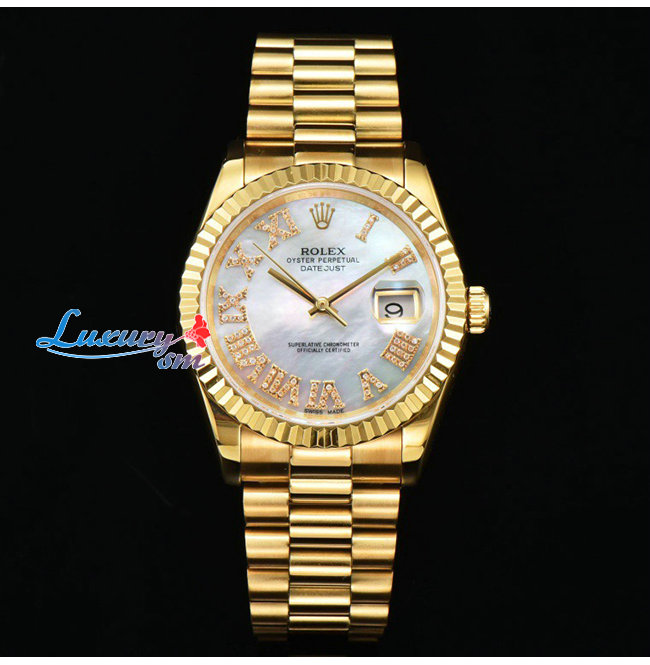 ★[正品완벽재현]ROLEX-롤렉스 데이트저스트 옐로우 골드 904L스틸 다이아 인덱스 샴페인 다이얼 여성워치 31mm