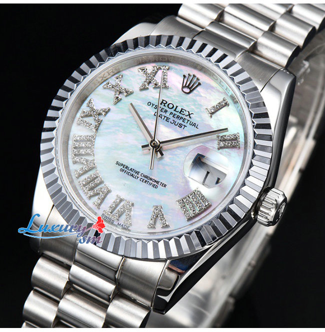 [스페셜오더]ROLEX-롤렉스 데이트저스트 데이트 플루티드 베젤 스틸 남녀공용 시계 36mm