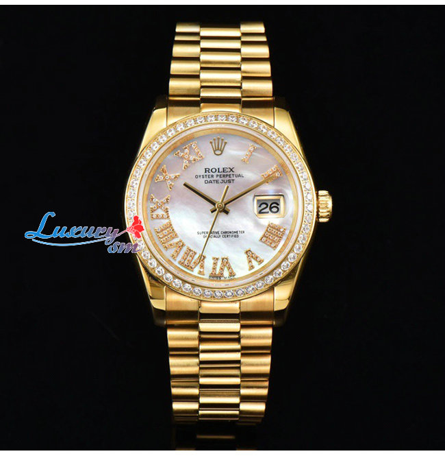 ★[正品완벽재현]ROLEX-롤렉스 데이트저스트 옐로우 골드 904L스틸 다이아 인덱스 샴페인 다이얼 여성워치 31mm