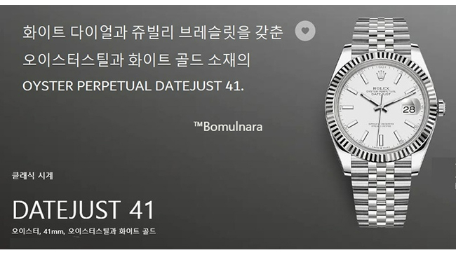[스페셜오더]ROLEX-롤렉스 데이트저스트 데이트 스틸 화이트 다이얼 시계 41mm 가격 : 680,000원