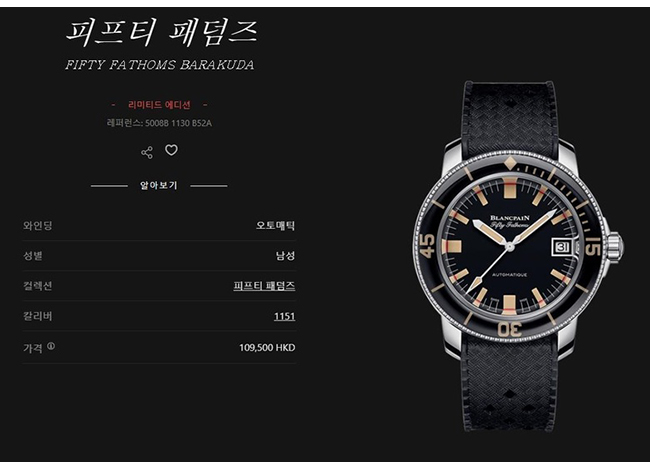 [스페셜오더]BLANCPAIN-블랑팡 피프티 패덤스 다이버 오토매틱 블랙다이얼 워치 45mm 가격 : 1,080,000원