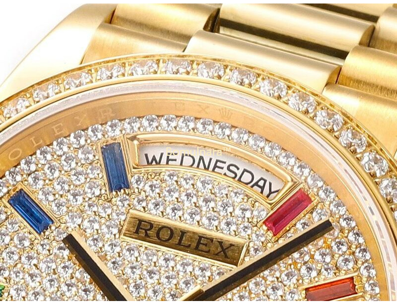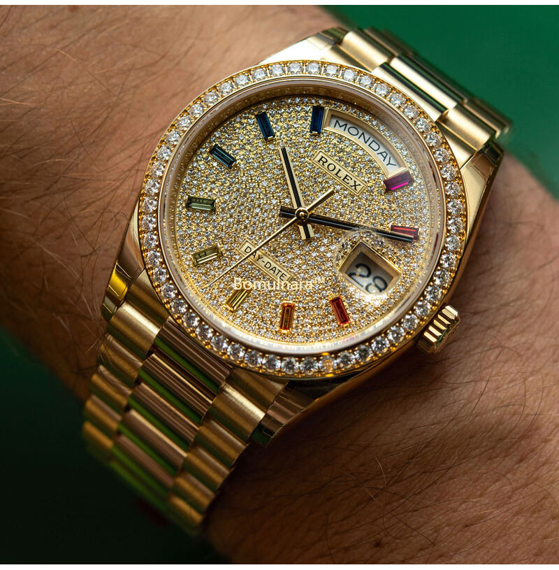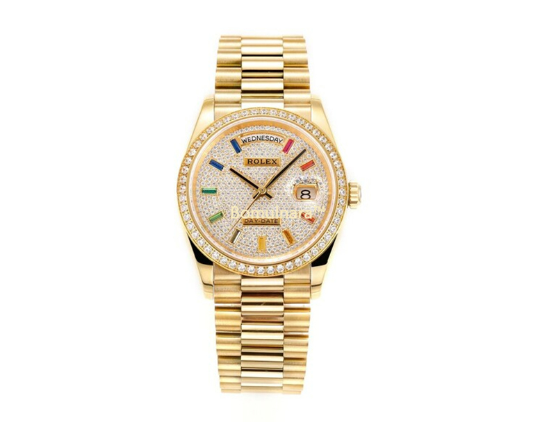 [스페셜오더][RA Factory]ROLEX-128348 롤렉스 데이-데이트 터콰이즈 옐로우 골드 다이아몬드 파베 다이얼 36mm 가격 : 1,080,000원