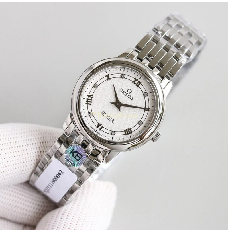 [스페셜오더][K6 Factory]OMEGA-오메가 드빌 프레스티지 다이아몬드 스틸 쿼츠 화이트 실버 다이얼 27.4mm