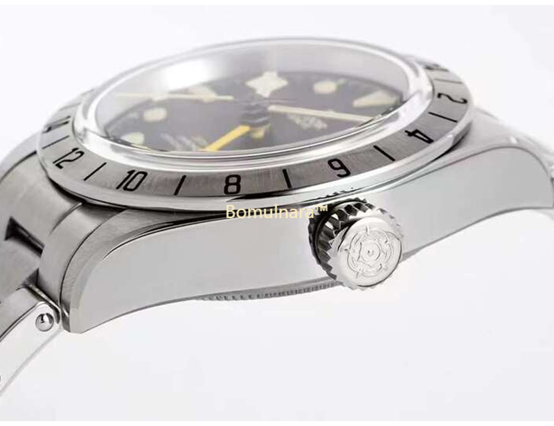 -베젤: 24시간 눈금이 새겨진 스틸 고정 베젤