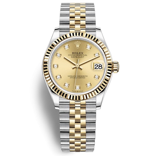★[正品완벽재현]ROLEX-롤렉스 데이트저스트 옐로우 골드 904L스틸 다이아 인덱스 샴페인 다이얼 여성워치 31mm