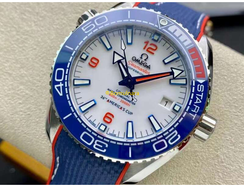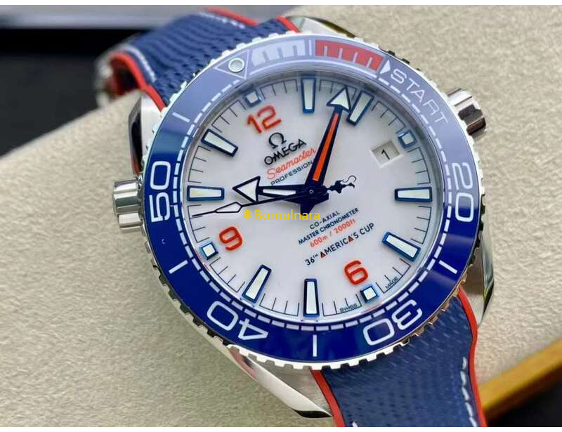 [VS]OMEGA-오메가 씨마스터 플래닛 오션 아메리카스 컵 에디션 43.5mm 904L 아메리카스 컵의 레드, 화이트, 블루 로고의 올드 머그 컬러에서 영감을 받아 탄생. *레퍼런스: 215.32.43.21.04.001 *기능: 시간, 분, 초, 날짜 표시창 *무브먼트: Cal.8900 오토매틱 무브먼트 *베젤: 양방향 회전 세라믹 베젤 *케이스: 904L 케이스 *브레슬릿: 러버 스트랩 *버클: 폴딩 클래스프 *크라운: 스크류-다운 *케이스 백: 블루 사파이어 케이스 백 *글래스: 돔형 사파이어 크리스탈 *파워 리저브: 약 48시간 *방수: 100m *제조사: VS Factory *기타: 2,021개 한정 제작 타임피스 Since2007최장수 홍콩명품온라인쇼핑몰by럭셔리즘