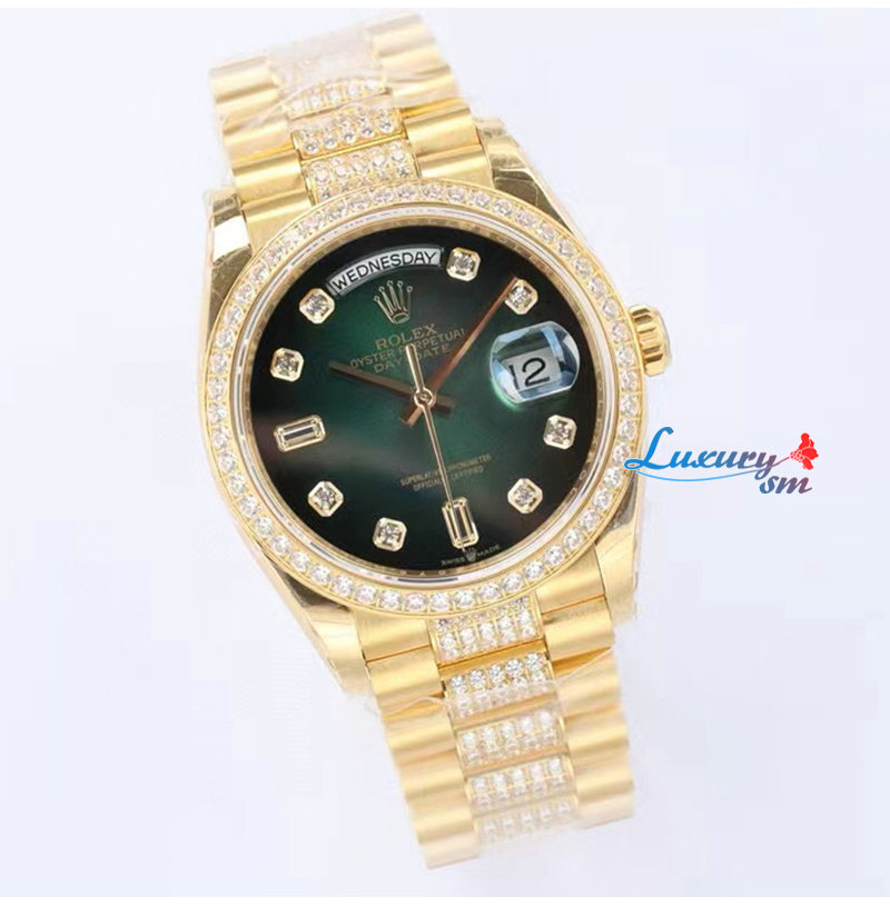 [스페셜오더][RA Factory]ROLEX-128348 롤렉스 데이-데이트 터콰이즈 옐로우 골드 다이아몬드 파베 다이얼 36mm