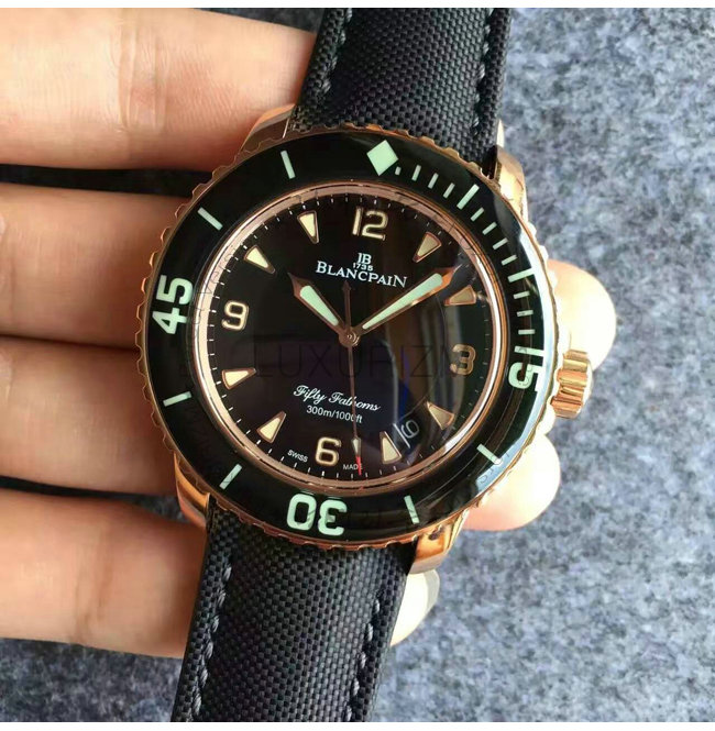 [스페셜오더]BLANCPAIN-블랑팡 피프티 패덤스 다이버 오토매틱 로즈 골드 블랙다이얼 워치 45mm