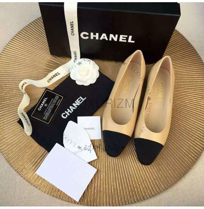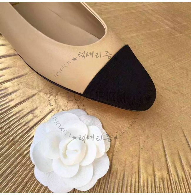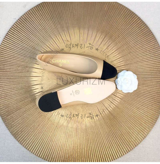 CHANEL-9057 샤넬 스웨이드 카프스킨 플랫 슈즈 블랙/베이지