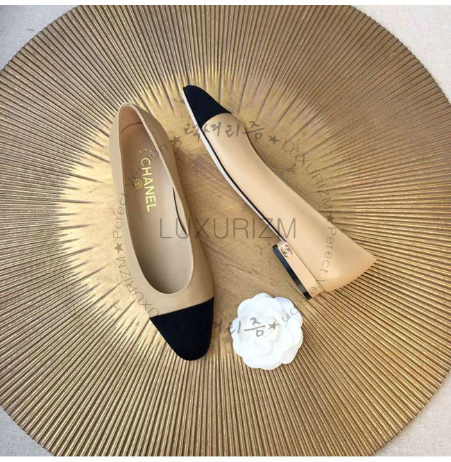 CHANEL-9057 샤넬 스웨이드 카프스킨 펌프스 블랙/베이지 가격 : 230,000원