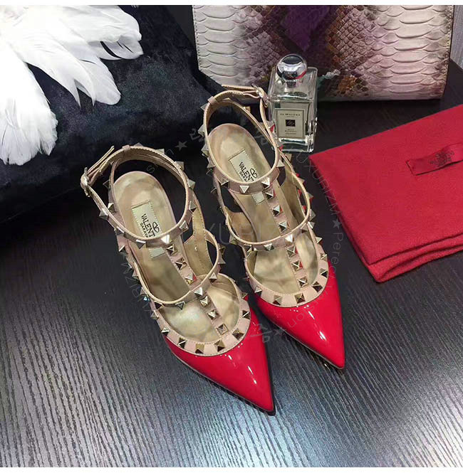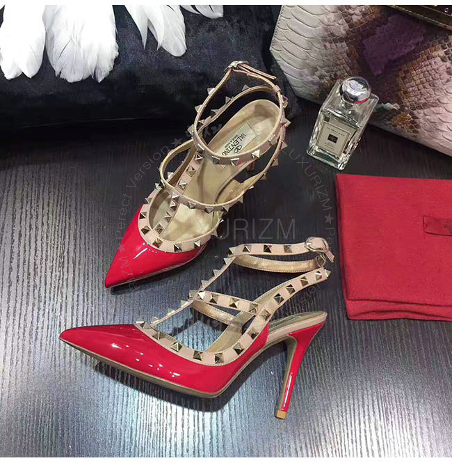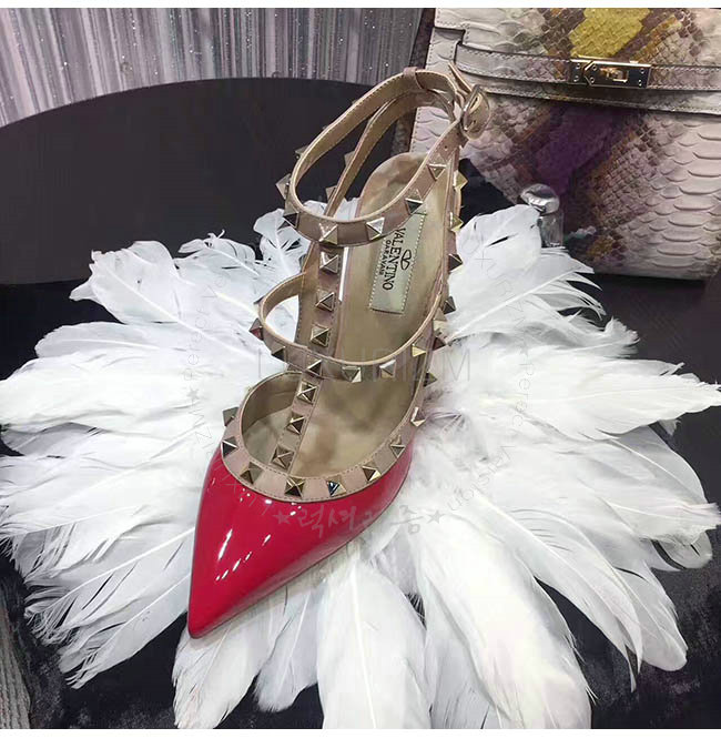 #여자신발쇼핑몰/이쁜여성신발추천/레플리카신발/발렌티노전문쇼핑몰 럭셔리즘 VALENTINO-LW2S0393 발렌티노 락스터드 앵클 스트랩 레드/베이지