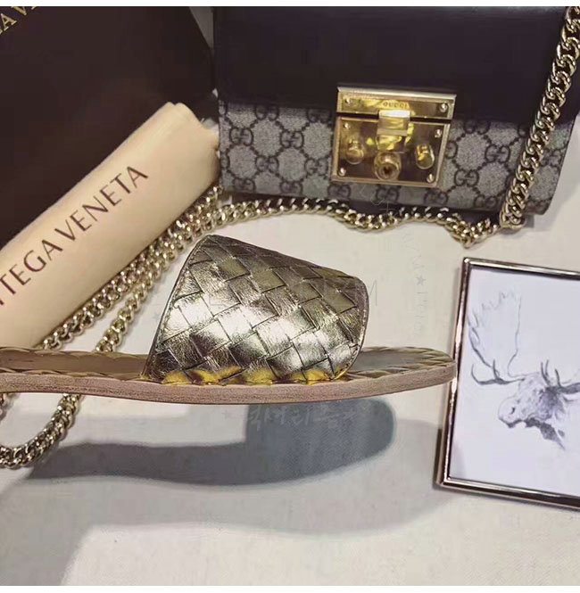 BOTTEGAVENETA-407413 보테가 베네타 라이트 골드 인트레치아토 카프 라벨로 샌들 여성용