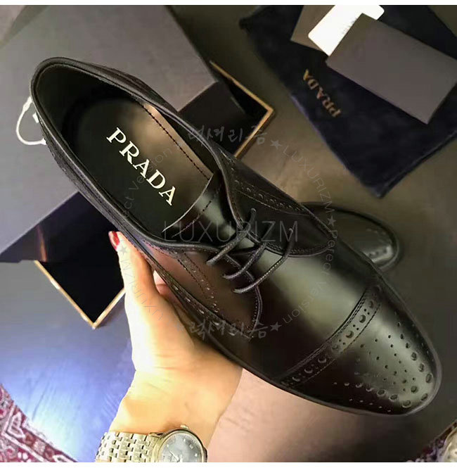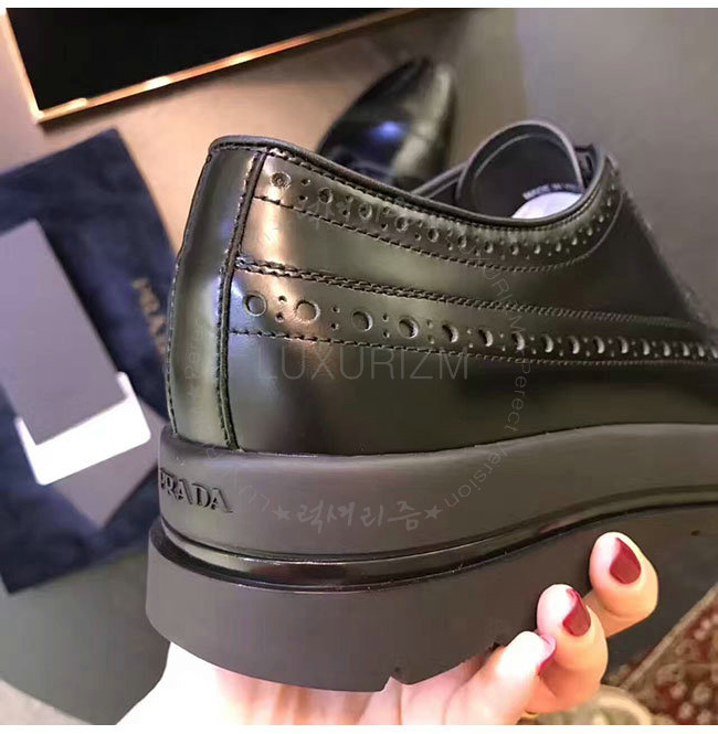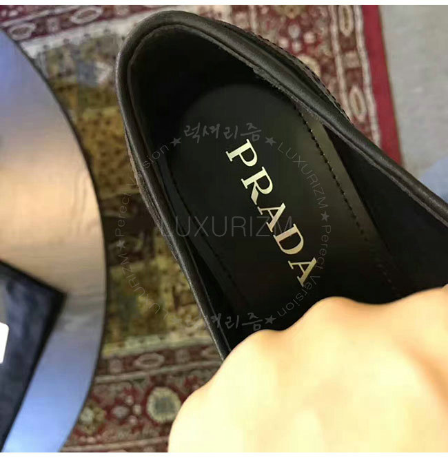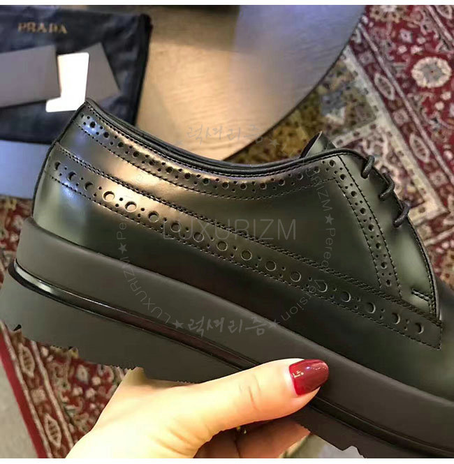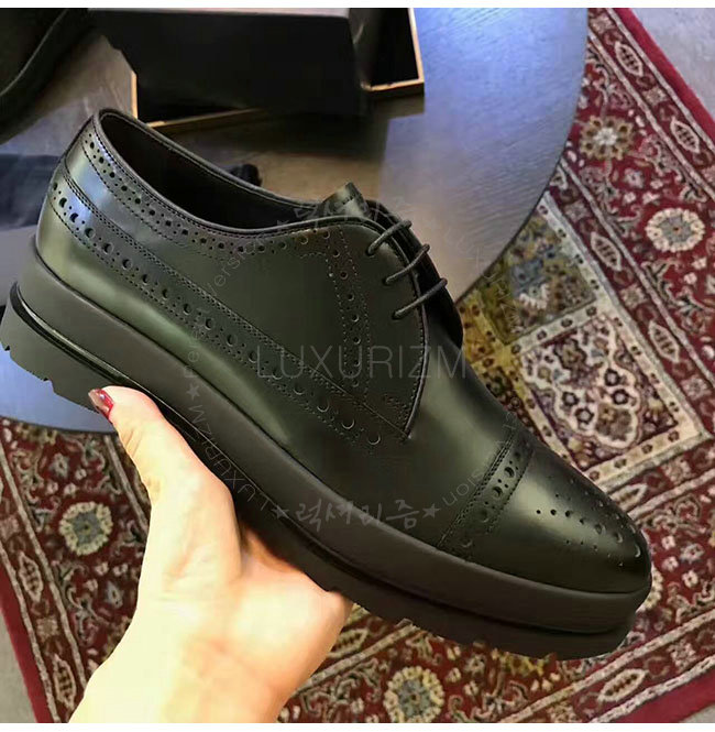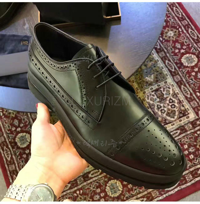 PRADA-2EG205 프라다 가죽 레이스 업 블랙 슈즈 남성용