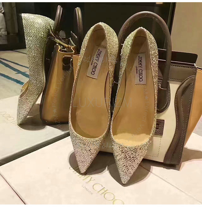JIMMY CHOO-ROMY40GFA 지미추 샴페인 글리터 패브릭 펌프 여성용