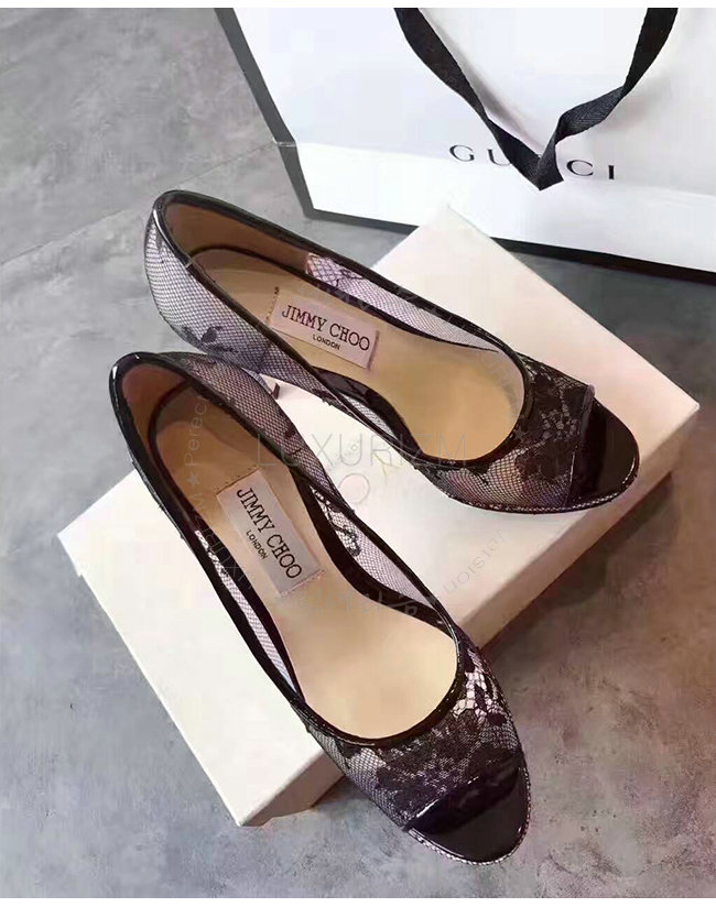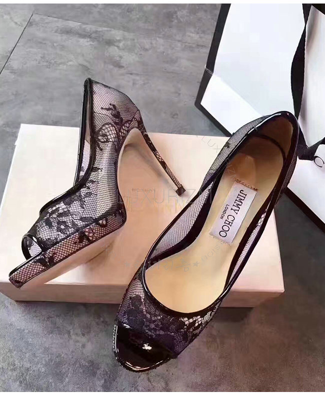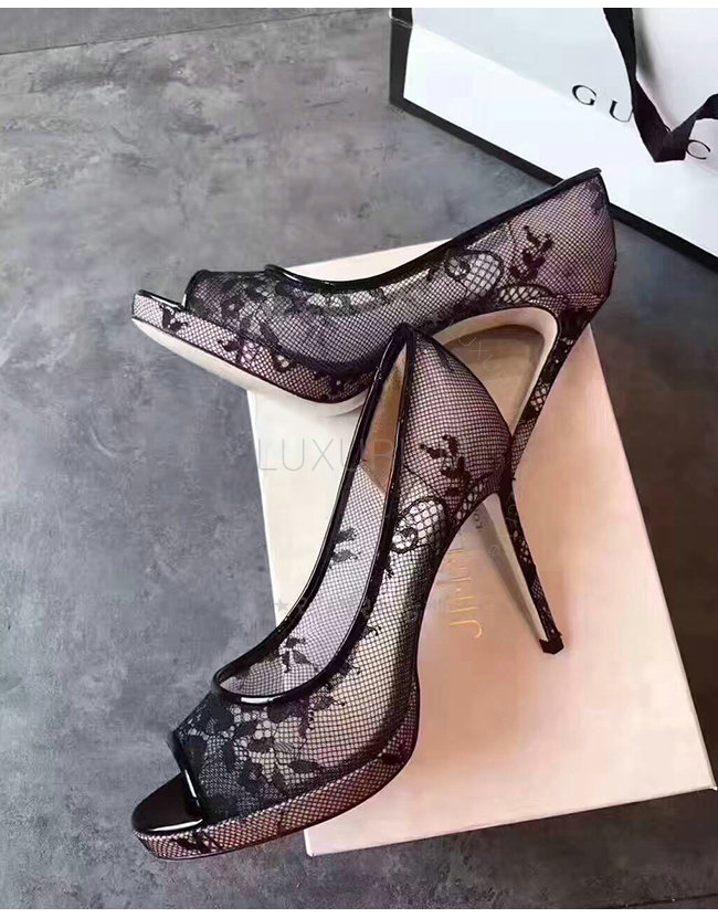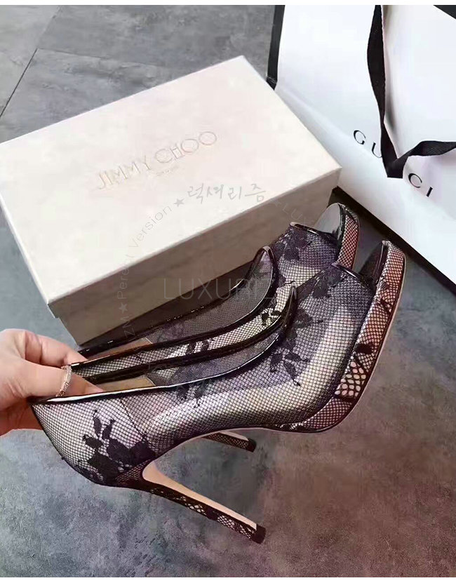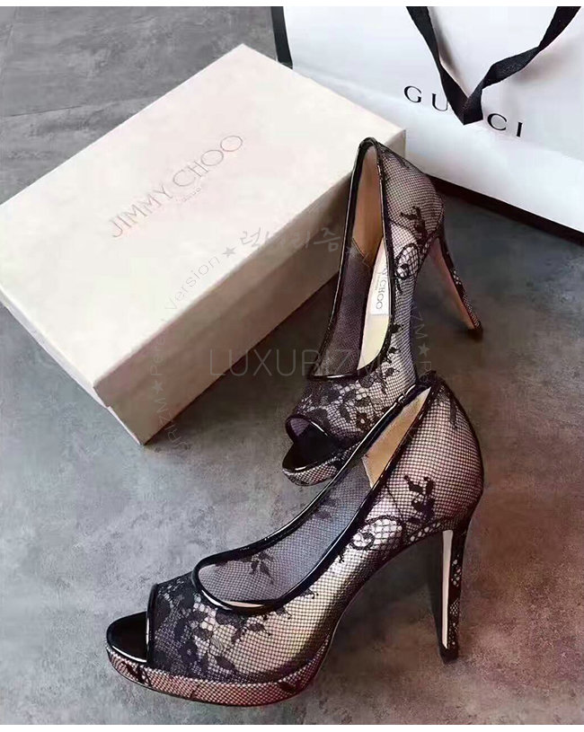 JIMMY CHOO-LUNA100 지미추 블랙 레이스 플랫폼 펌프 여성용