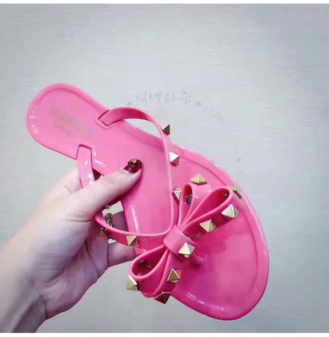 VALENTINO-LW1S0552 발렌티노 핑크 락스터드 PVC 플립플랍 여성용