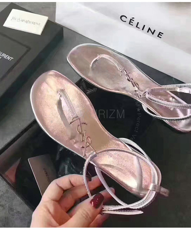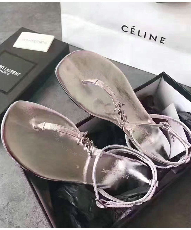 SAINT LAURENT-466680 생로랑 실버 누 피에 샌들 여성용