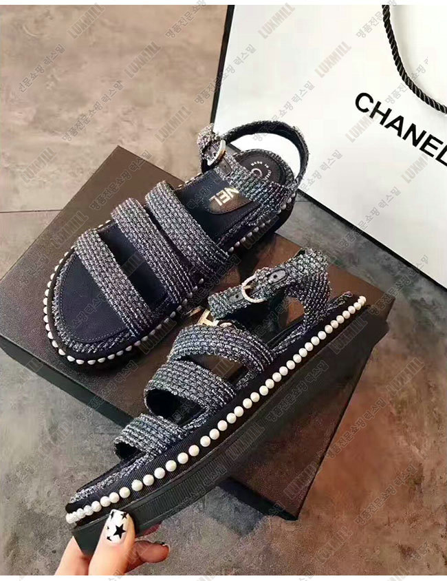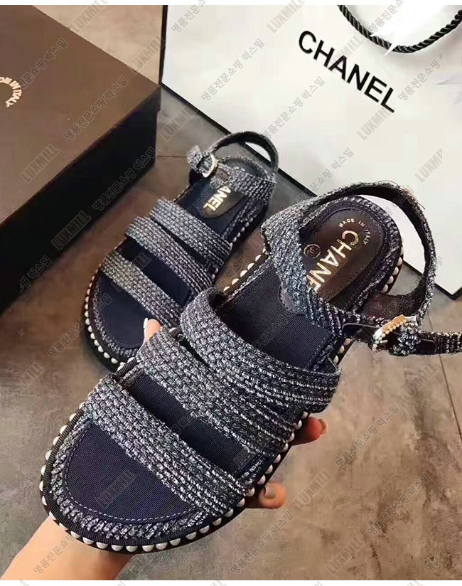 CHANEL-G32359 샤넬 네이비 트위드 샌들 여성용