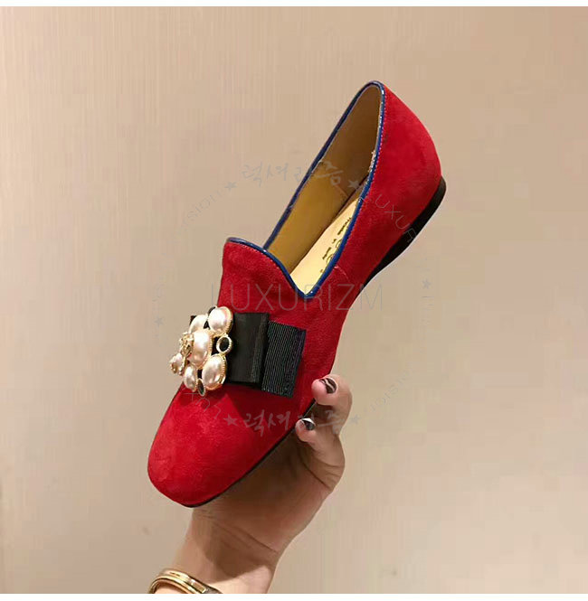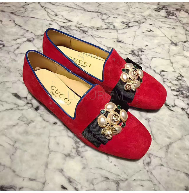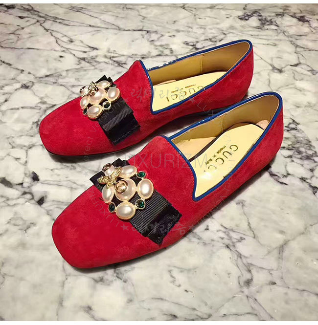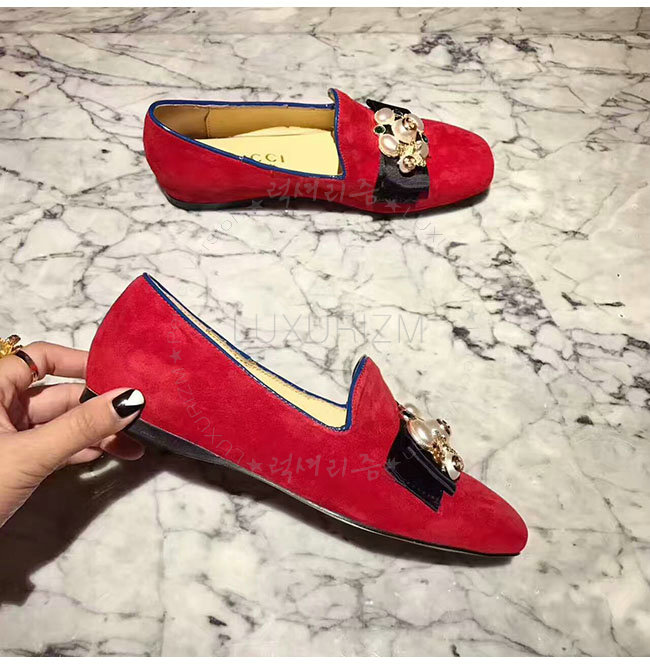 GUCCI-474491 6456 구찌 벨벳 발레 레드 플랫 여성용