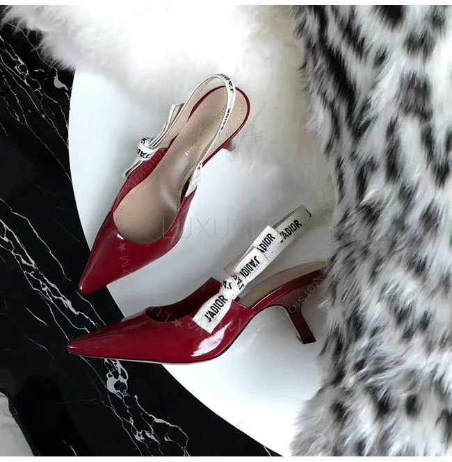 DIOR-C200 디올 리본&레드 페이턴트 가죽 슬링 백 여성용