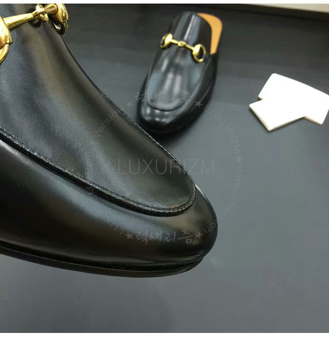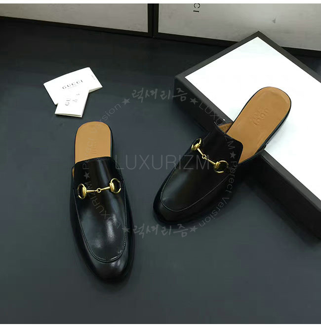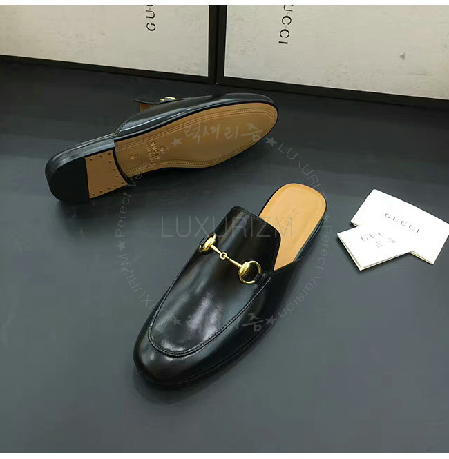 [스페셜오더]GUCCI-426219 1000 구찌 블랙 가죽 홀스빗 슬리퍼 남성용