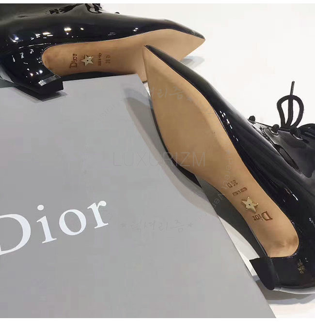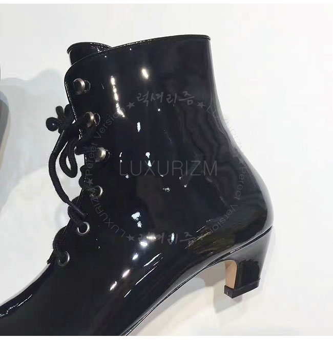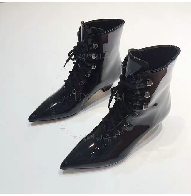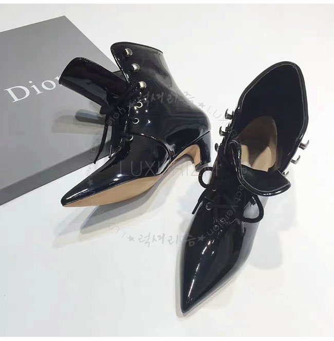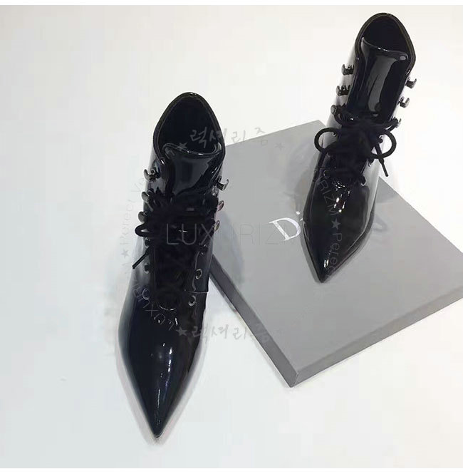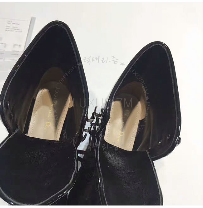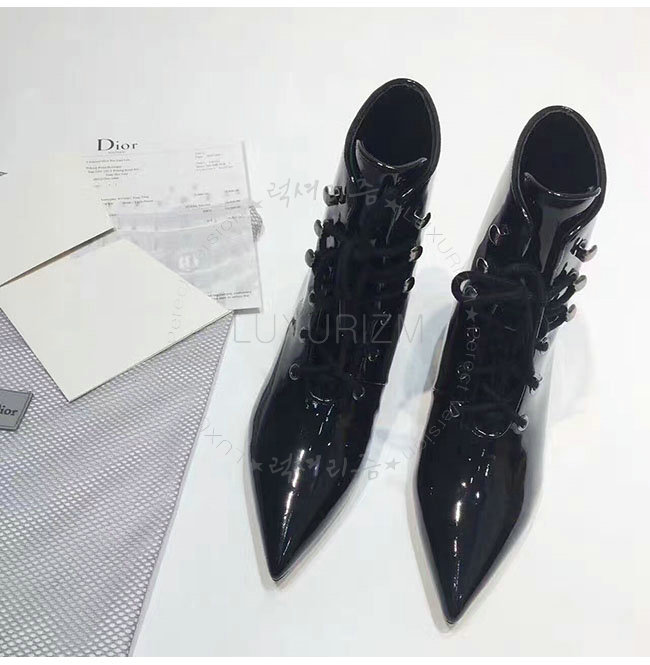 DIOR-KCI404 디올 블랙 페이턴트 소가죽 레이스 업 앵클 부츠 여성용