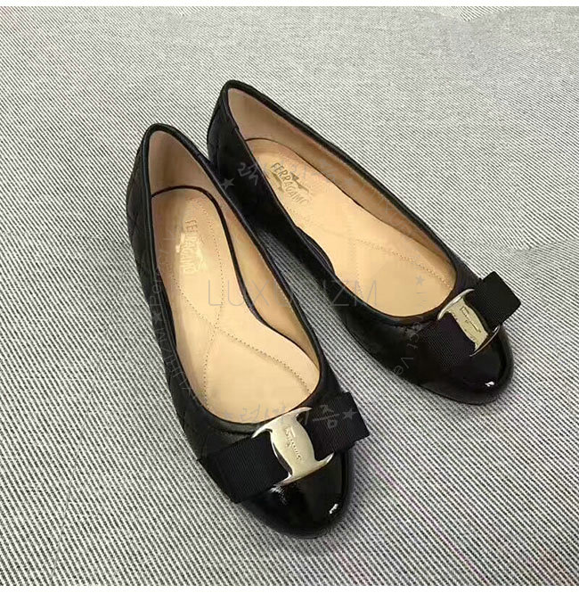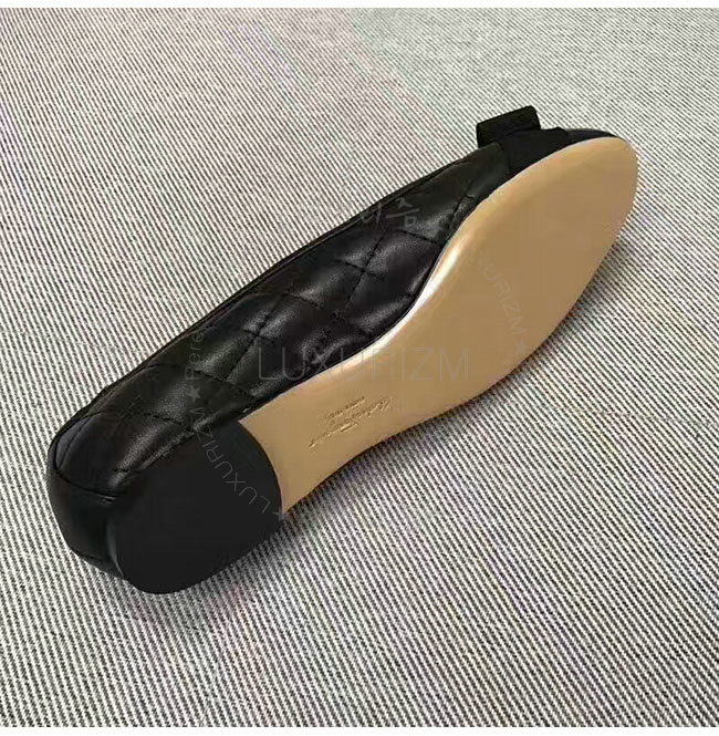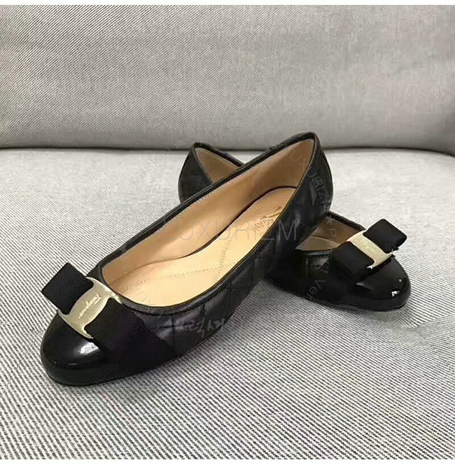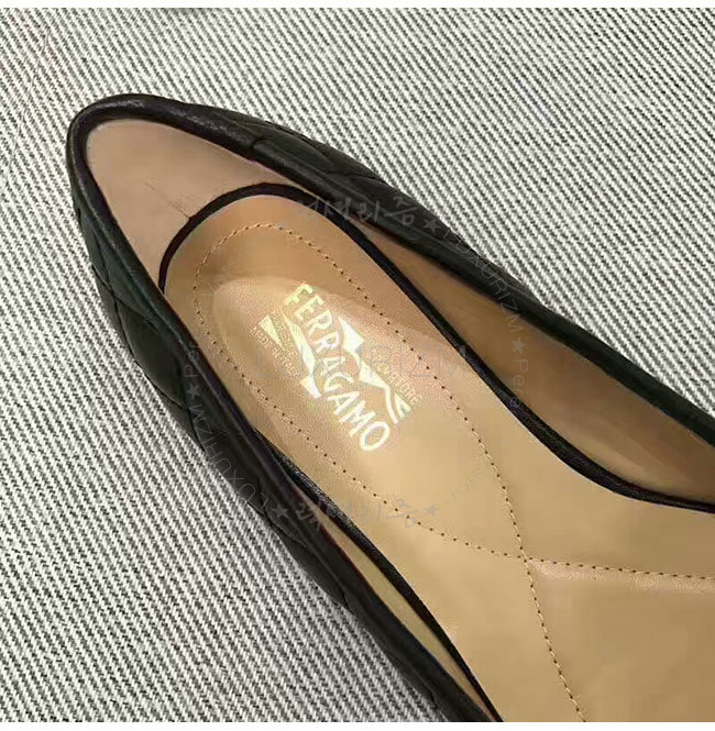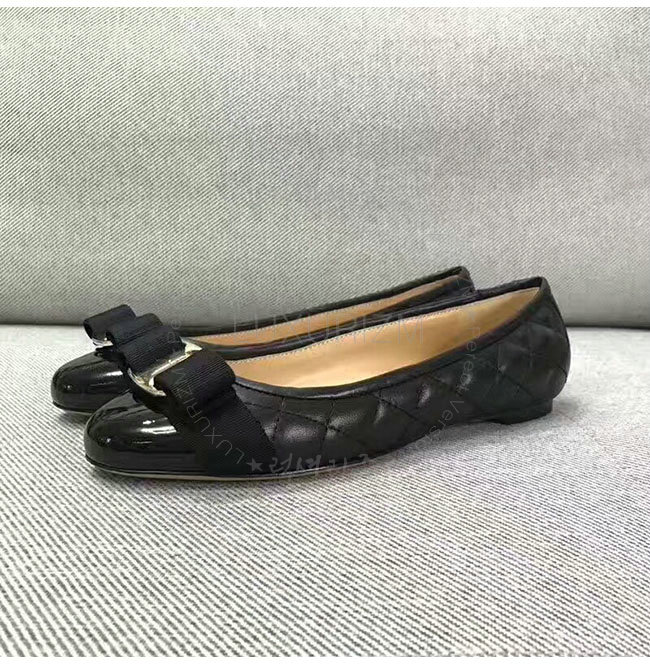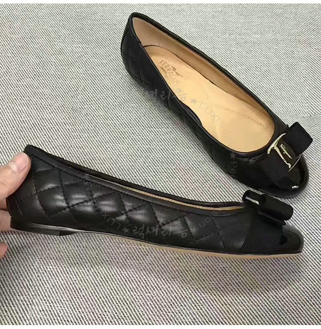 FERRAGAMO-01M831 페라가모 퀼티드 바라 블랙 플랫 슈즈 여성용