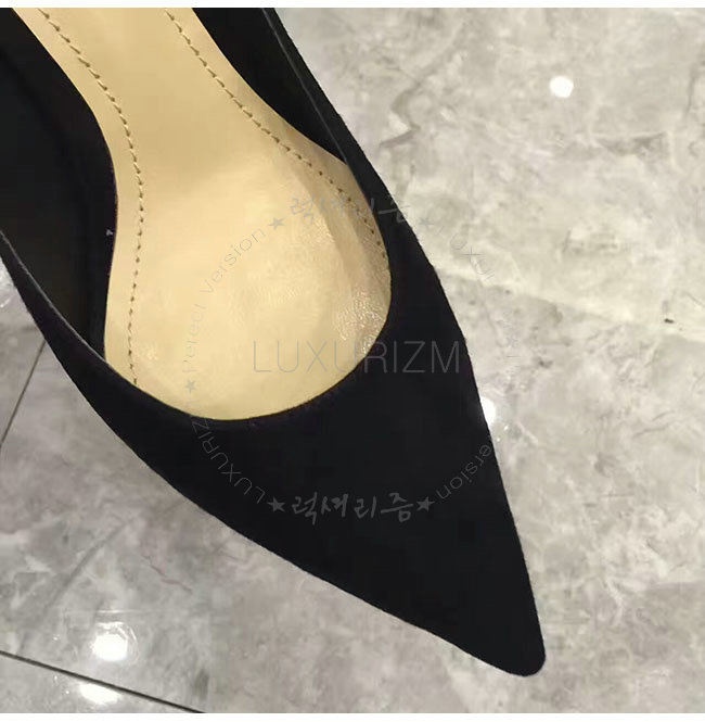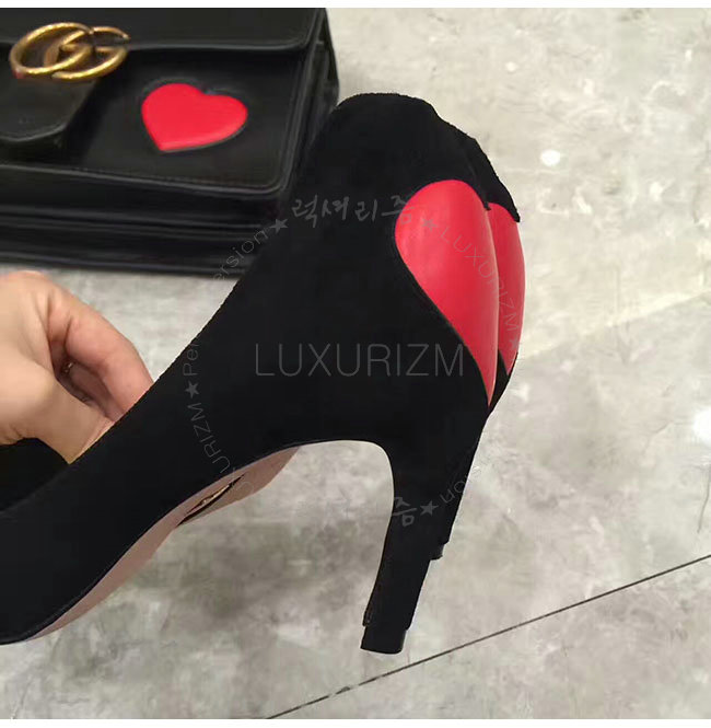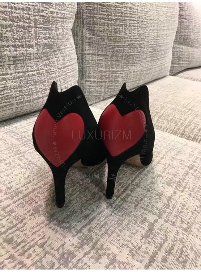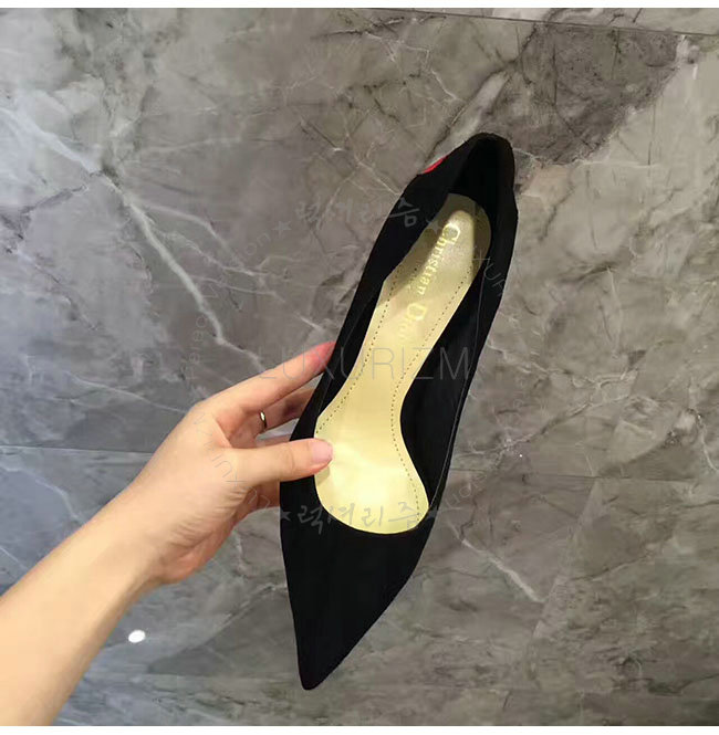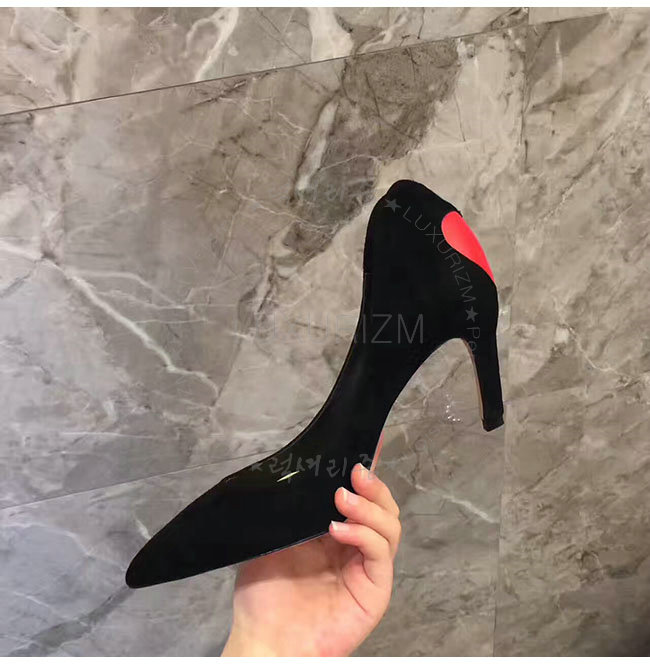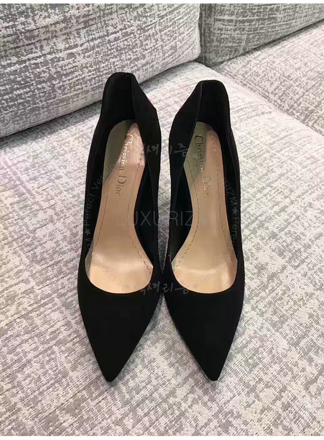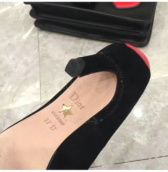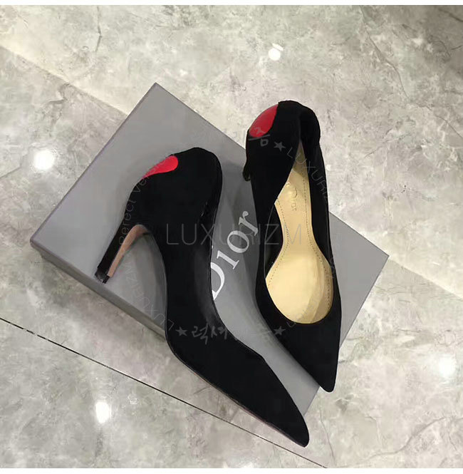 DIOR-KDP338 디올 하트 장식 블랙 스웨이드 송아지 가죽 펌프스 여성용