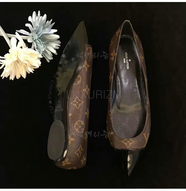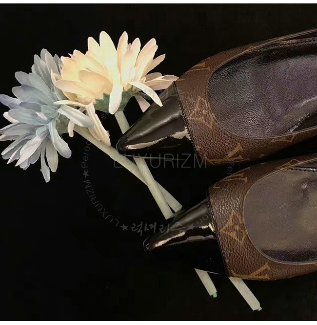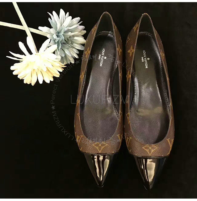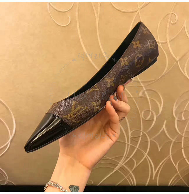 페이턴트 모노그램 캔버스 소재의 플랫 발레리나입니다.뾰족한 앞 코에 페이턴트