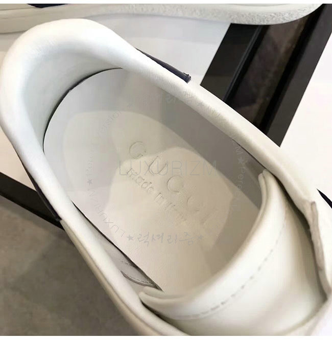 GUCCI-387993 9072 구찌 에이스 화이트 네이비 가죽 로우탑 스니커즈 여성용