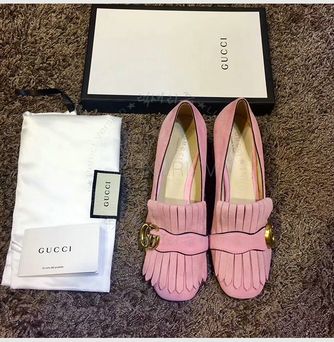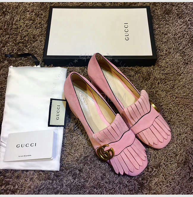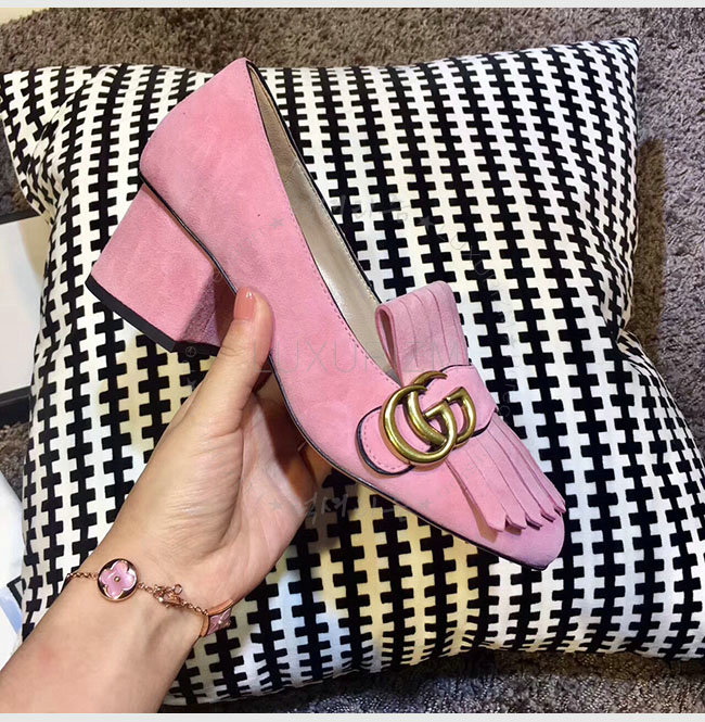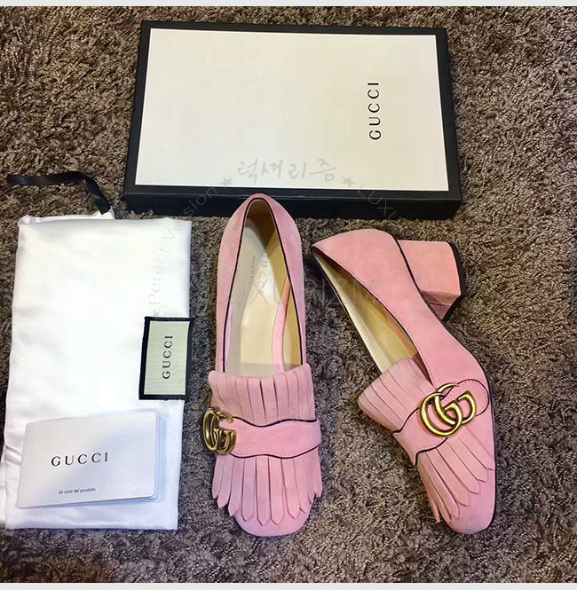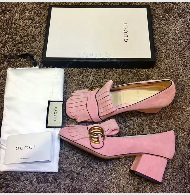 GUCCI-408208 5727 구찌 핑크 스웨이드 미드힐 펌프스 여성용