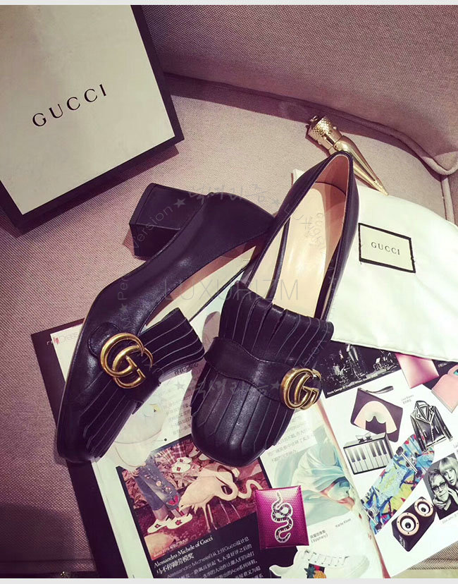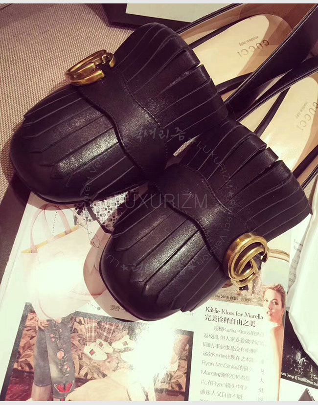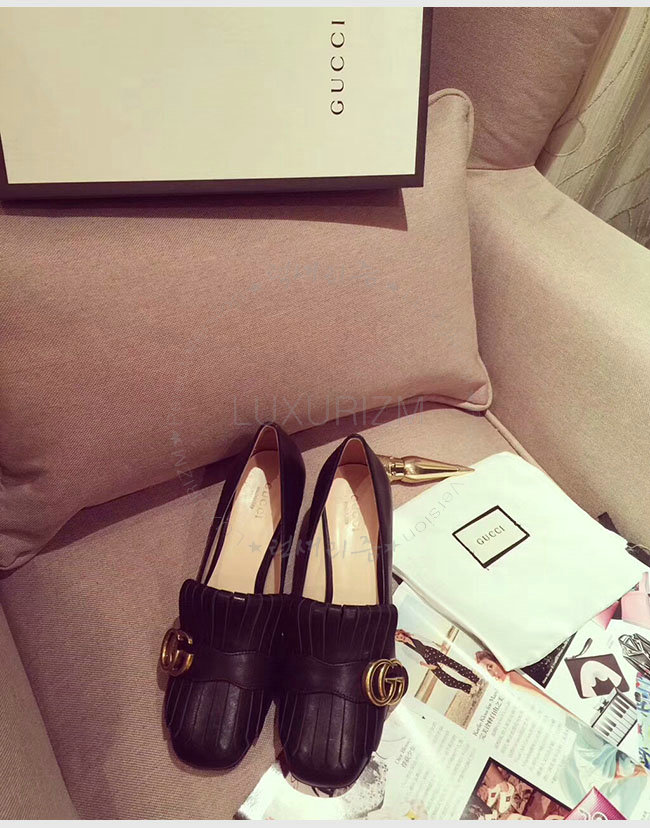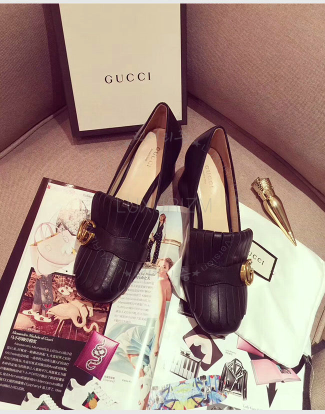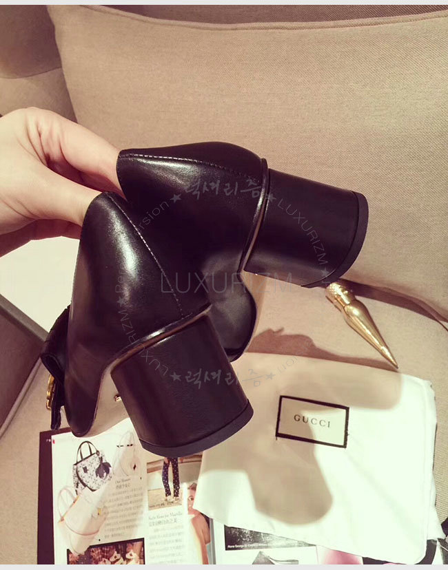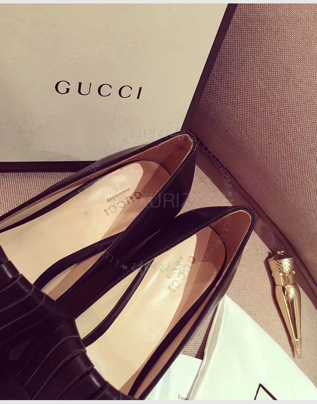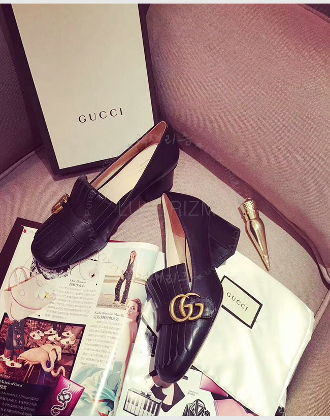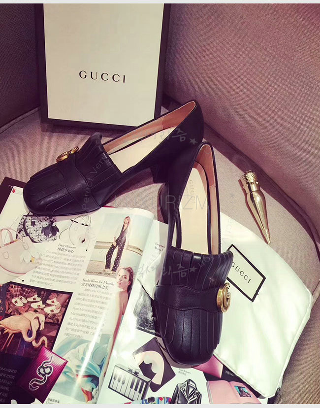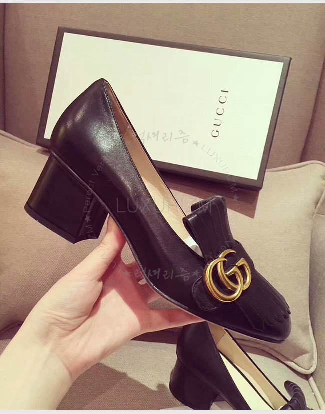 GUCCI-408208 1000 구찌 블랙 가죽 미드힐 펌프스 여성용