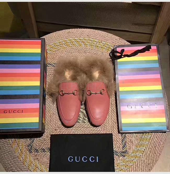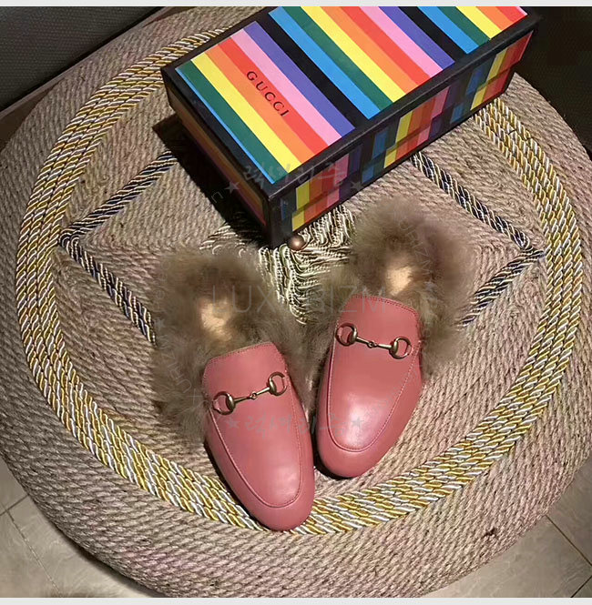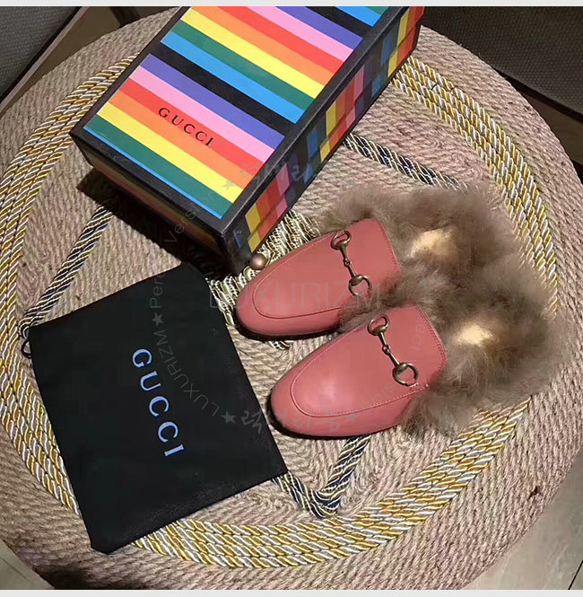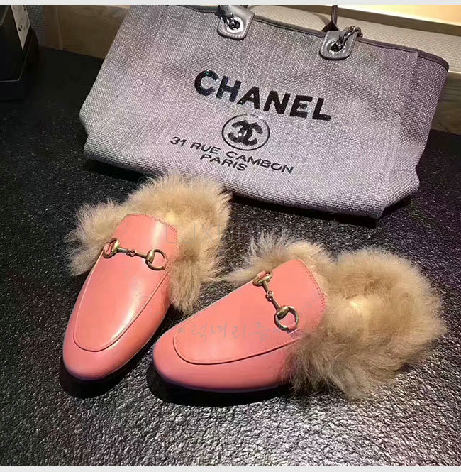 GUCCI-426361 6398 구찌 프린스타운 로즈 핑크 가죽 슬리퍼 여성용