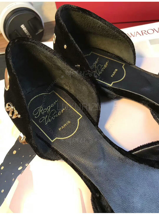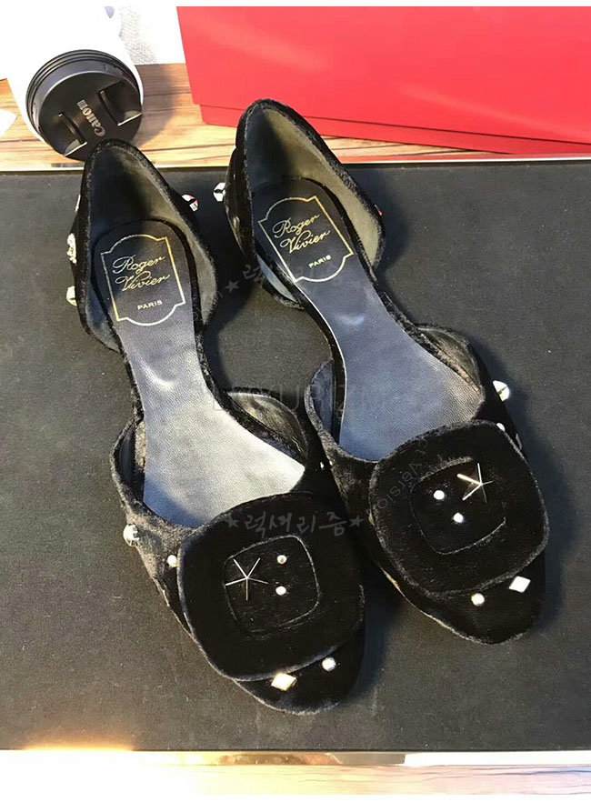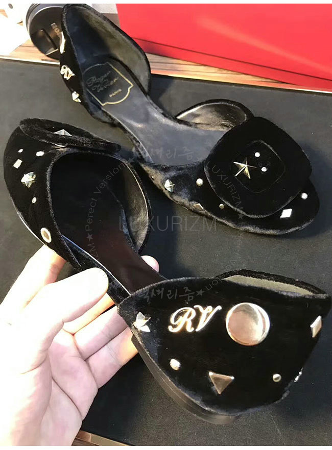 ROGER VIVIER-08819750 로저비비에 아스트르 스터드 블랙 벨벳 발레리나 여성용