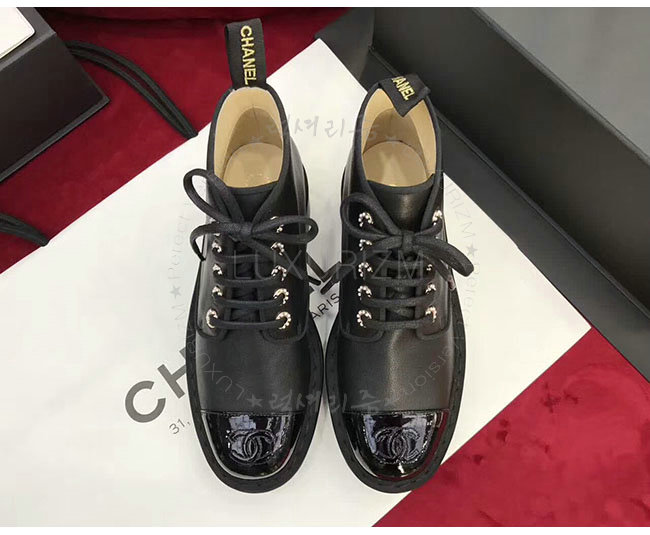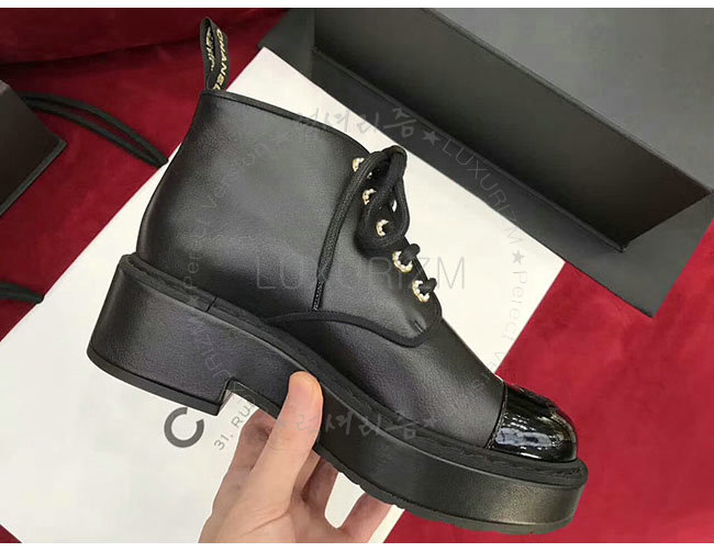 #홍콩명품신발추천 대한민국1등쇼핑몰 샤넬신발사이트 럭셔리즘 CHANEL-G33169 샤넬 블랙 페이턴트 카프스킨 쇼트 부츠 여성용
