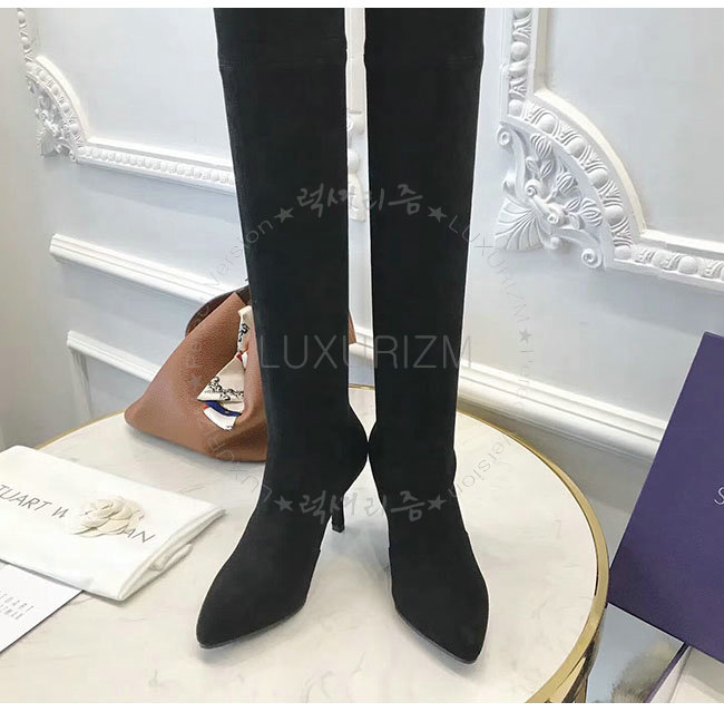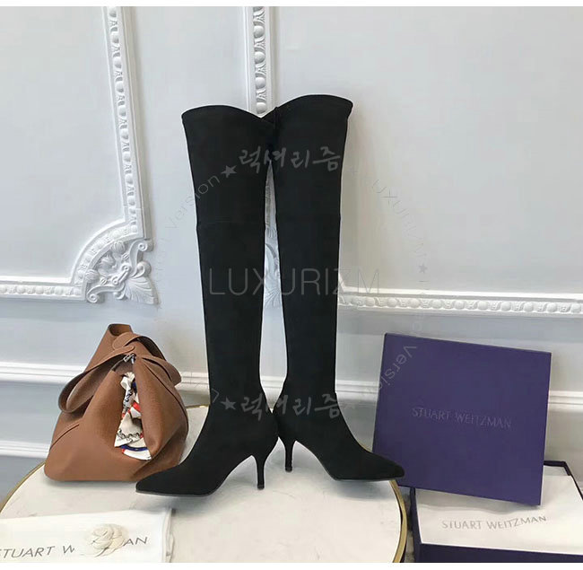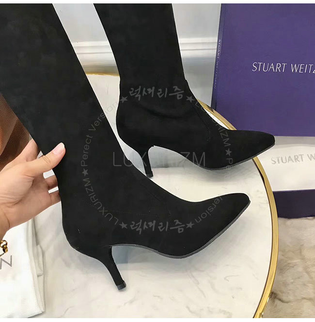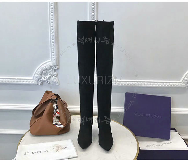 STUART WEITZMAN 스튜어트 와이츠먼 블랙 스웨이드 미드랜드 부츠 여성용