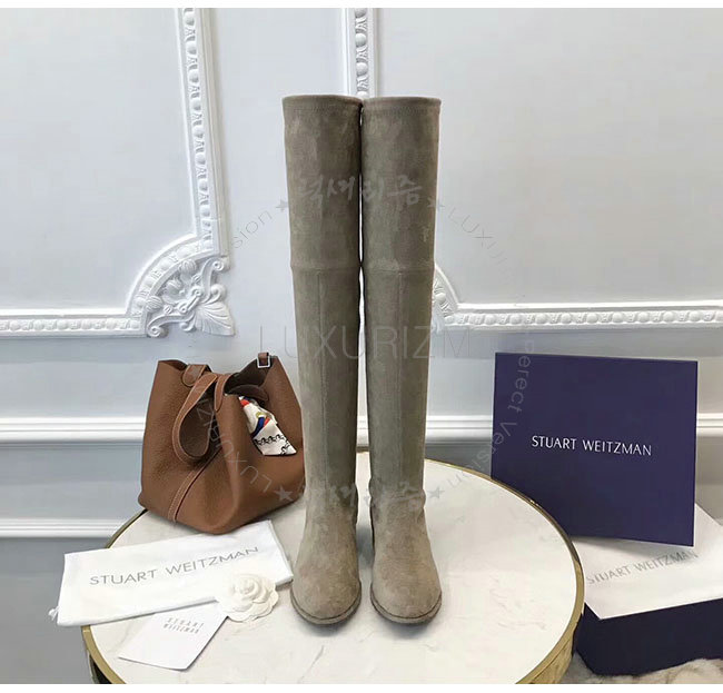 STUART WEITZMAN 스튜어트 와이츠먼 라이트 그레이 스웨이드 로우랜드 부츠 여성용
