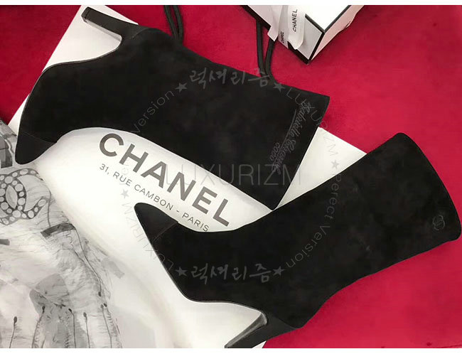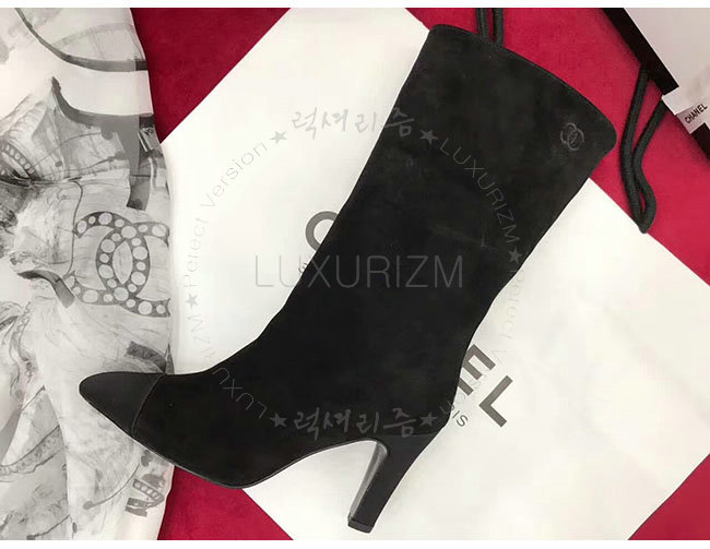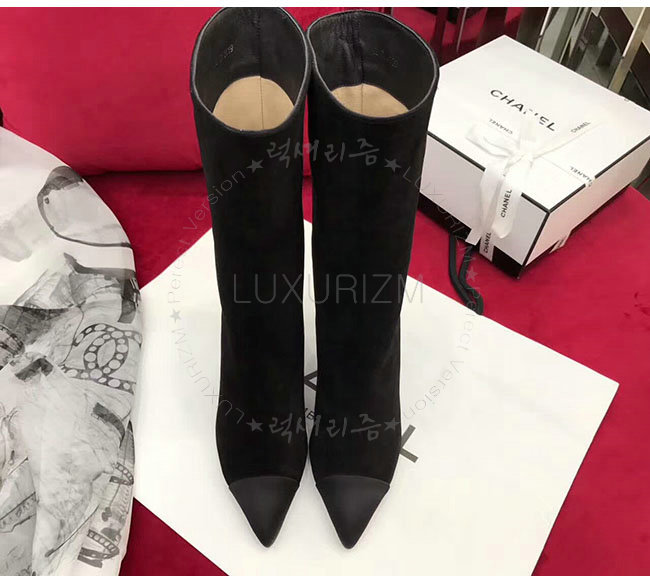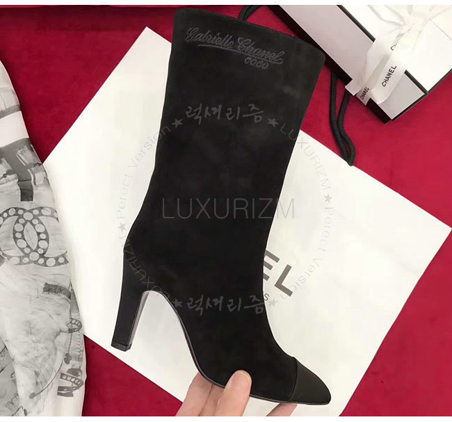 CHANEL-G33119 샤넬 블랙 스웨이드 카프스킨 하이 부츠 여성용
