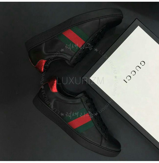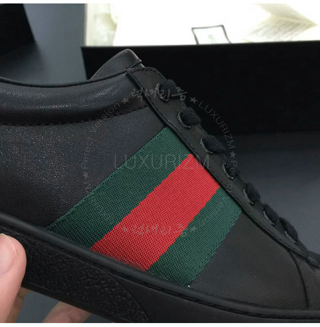 -구찌 [Ace] web 디테일 블랙 로우탑 남성 레플리카 스니커즈 카톡 HKLUXURIZM