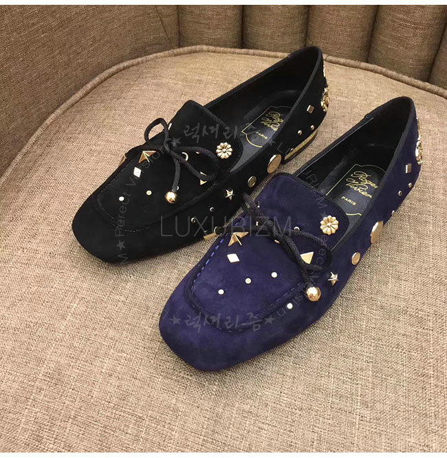 ROGER VIVIER-44919630 로저비비에 블랙 벨벳 아스트르 스터드 로퍼 여성용