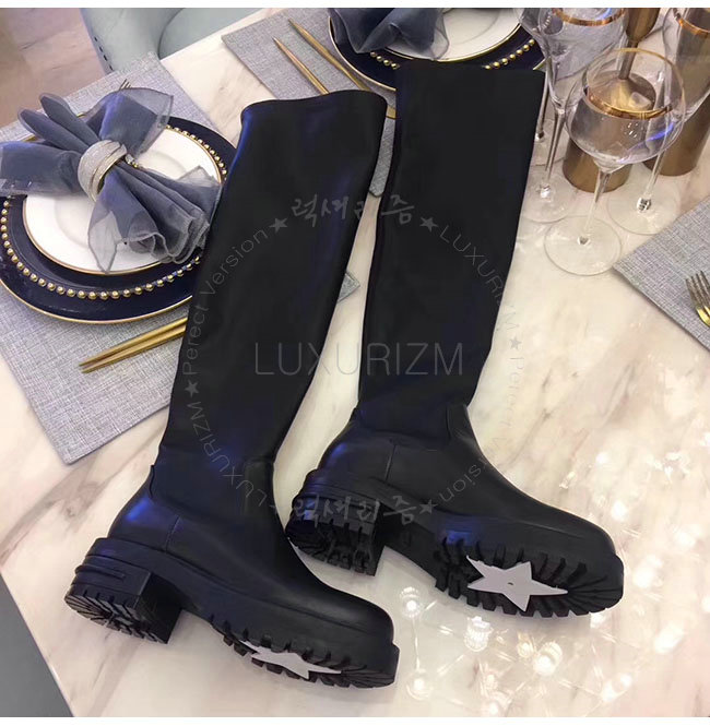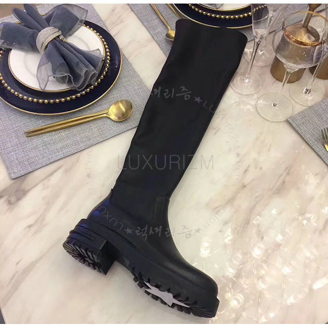 DIOR-KCI398 디올 블랙 소가죽 사이하이 부츠 여성용
