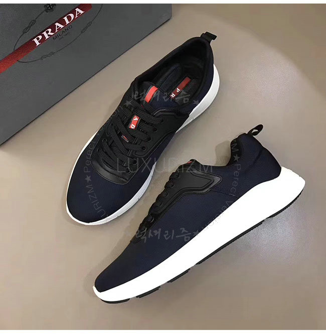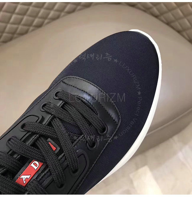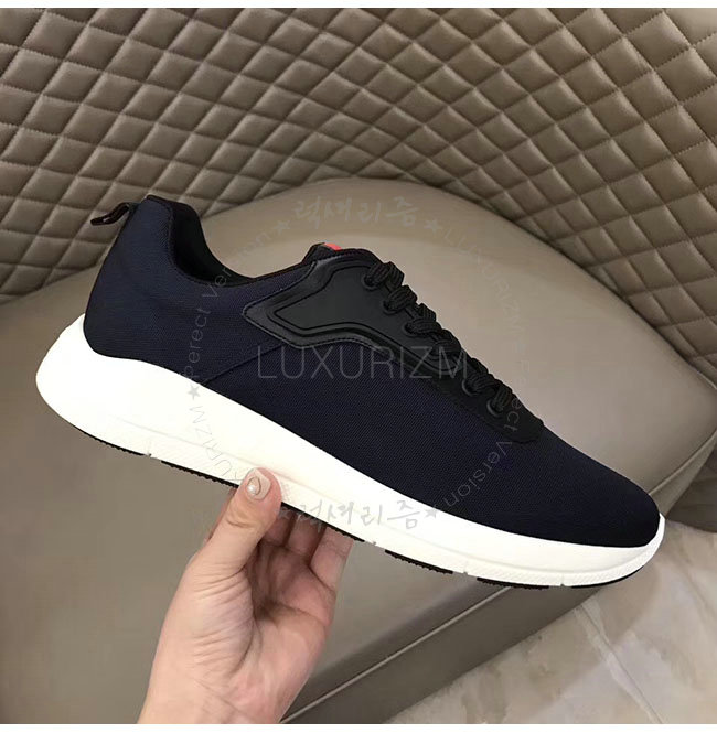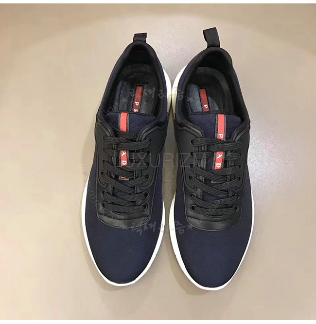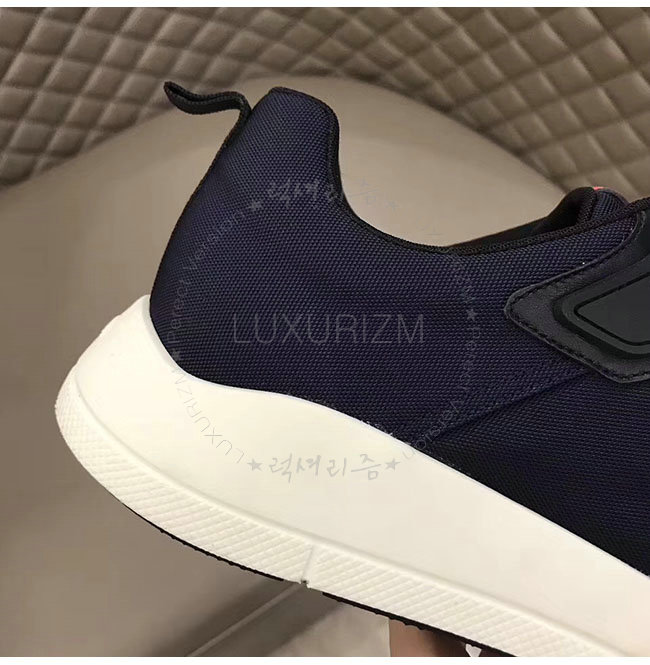 PRADA-4E3148 프라다 네이비 가죽 트림 장식의 나일론 스니커즈 남성용