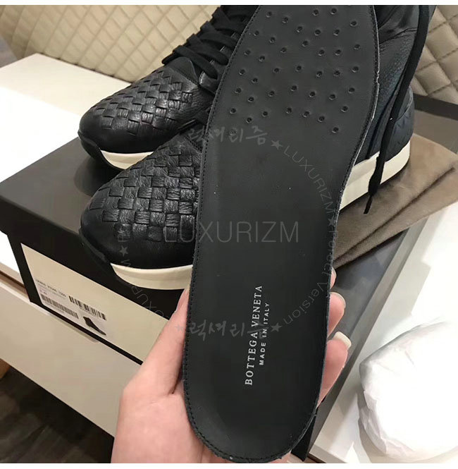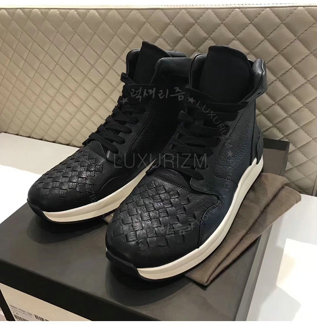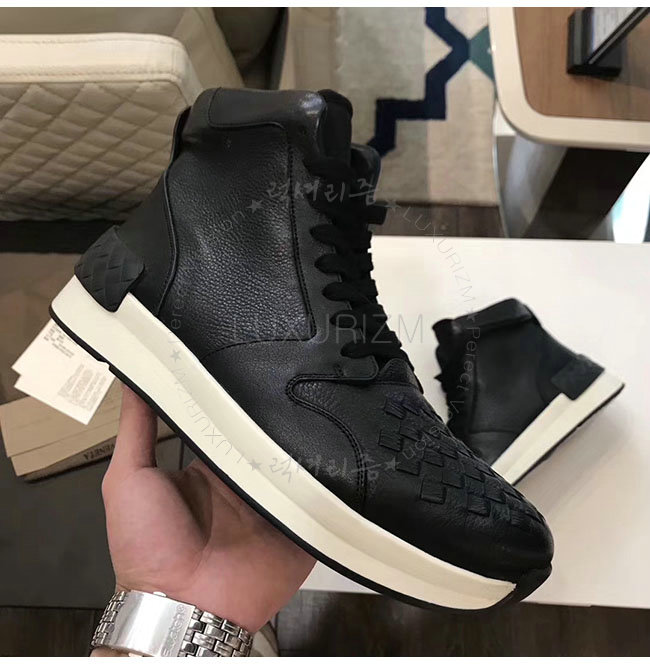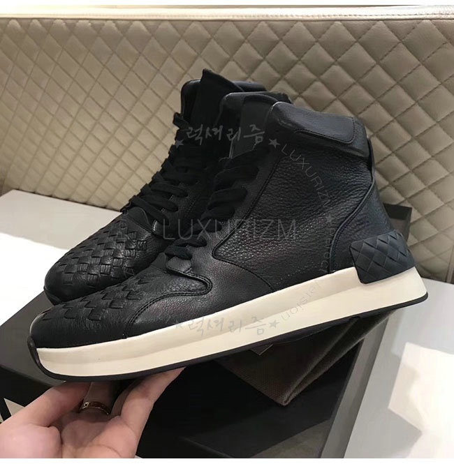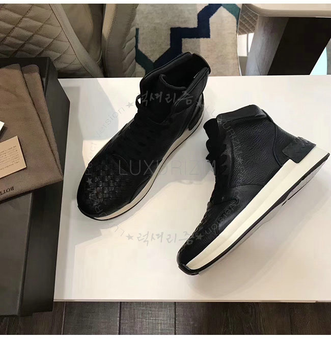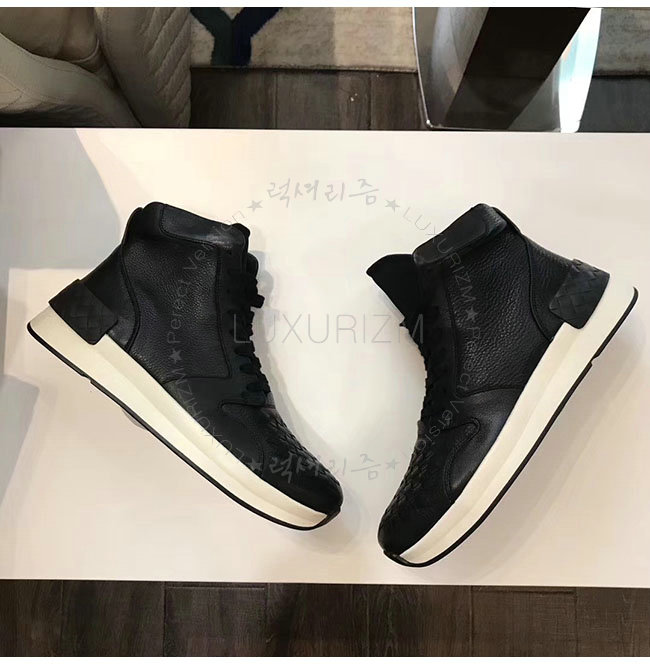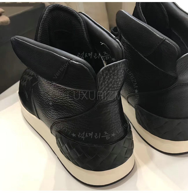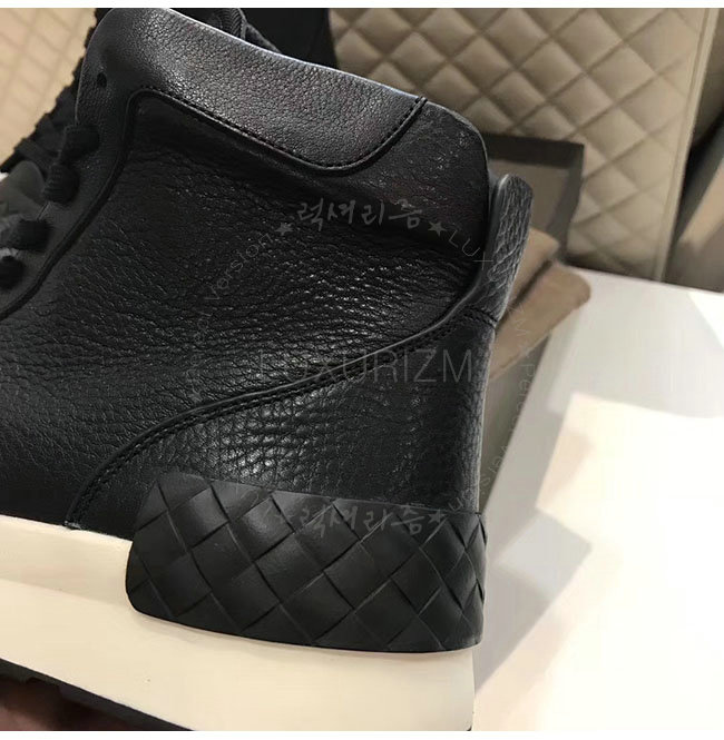 내추럴한 광택이 돋보이는 그레인드 카프스킨 소재의 BV그랜드 하이 스니커즈입니다.넓은 고무