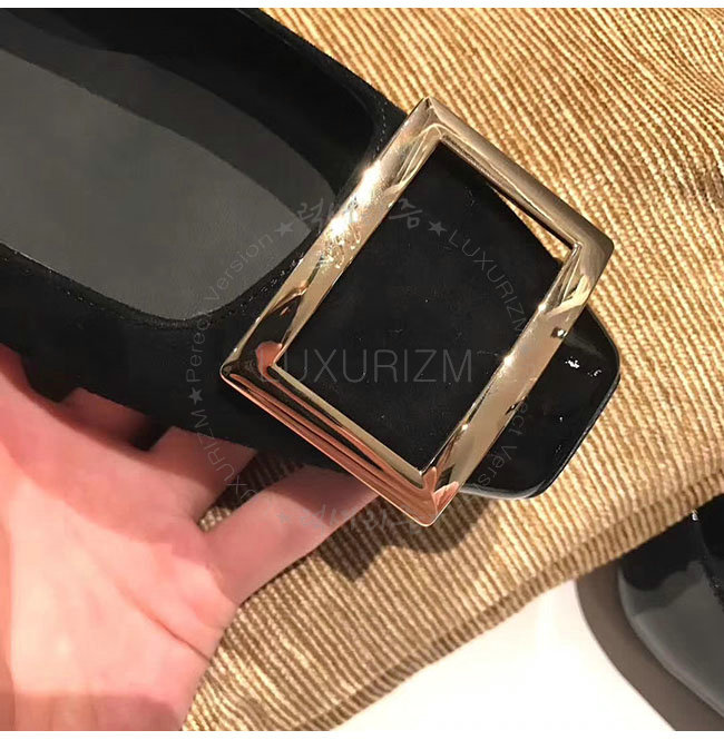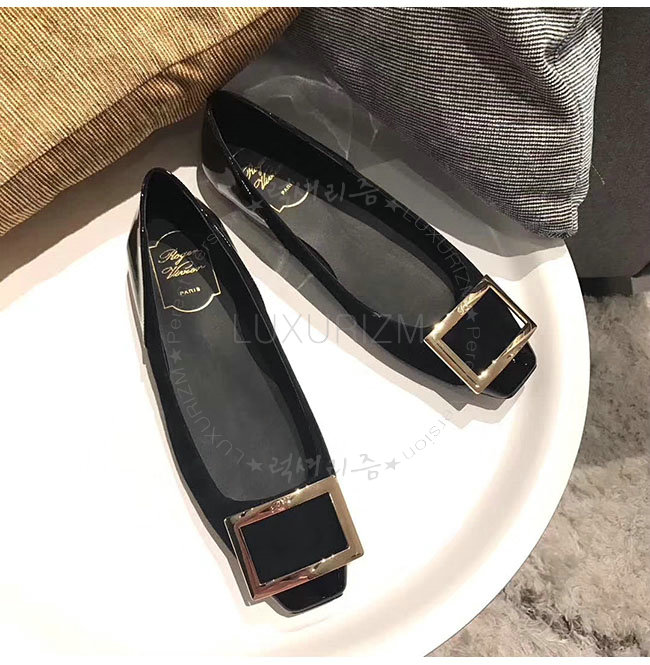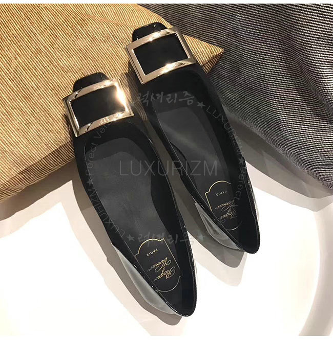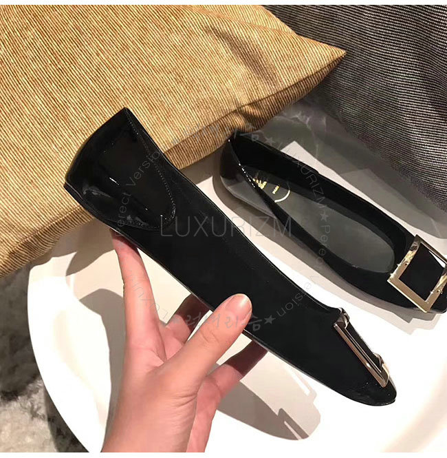 ROGER VIVIER-40018350 로저비비에 트롬 페트 페이턴트 가죽 블랙 스웨이드 발레리나 여성용