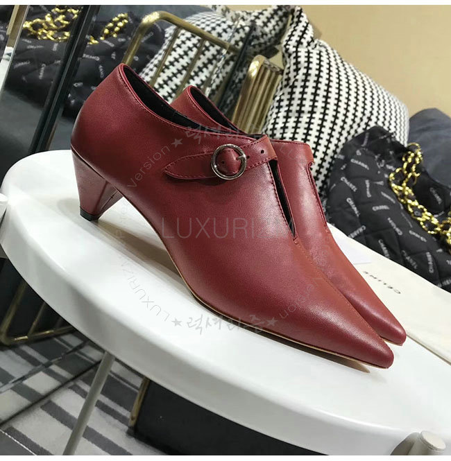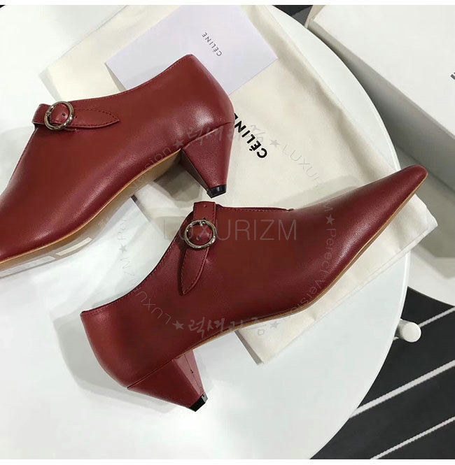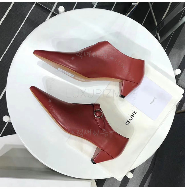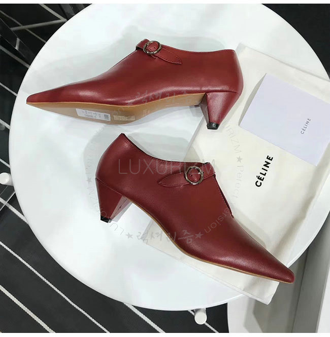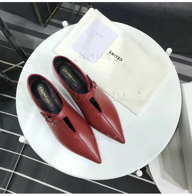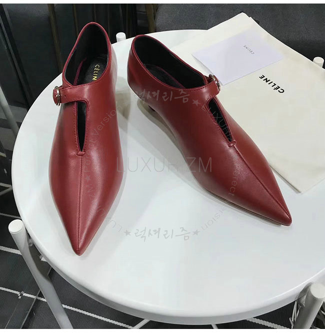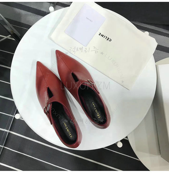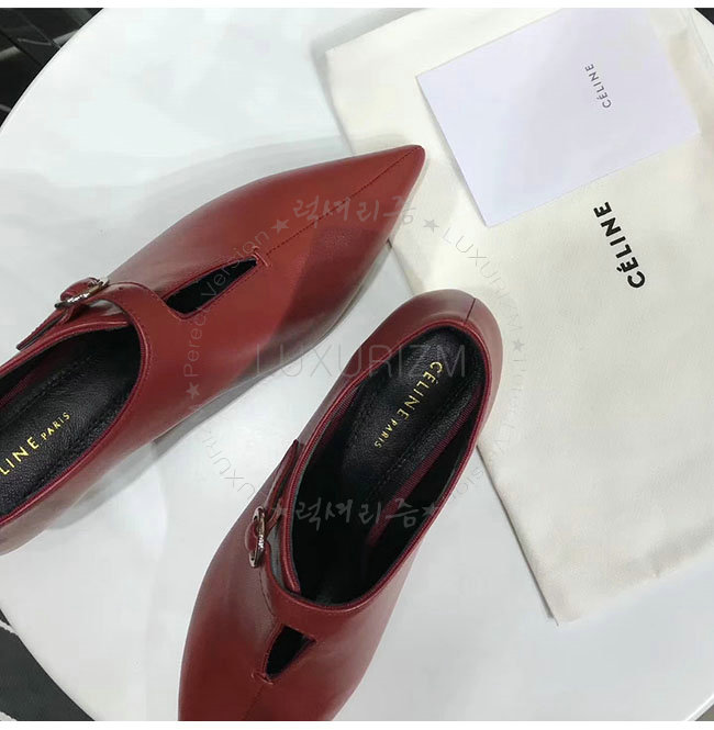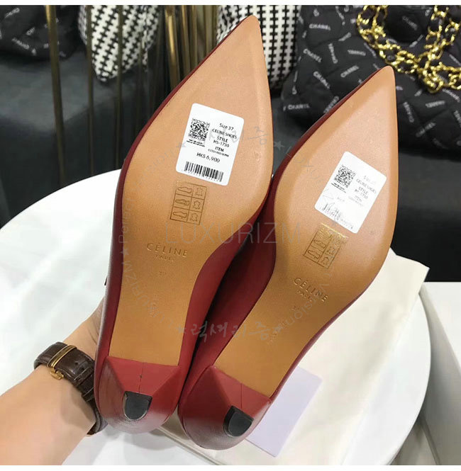 CELINE-322803 셀린느 버건디 램스킨 소프트 V넥 바부슈 펌프스 여성용
